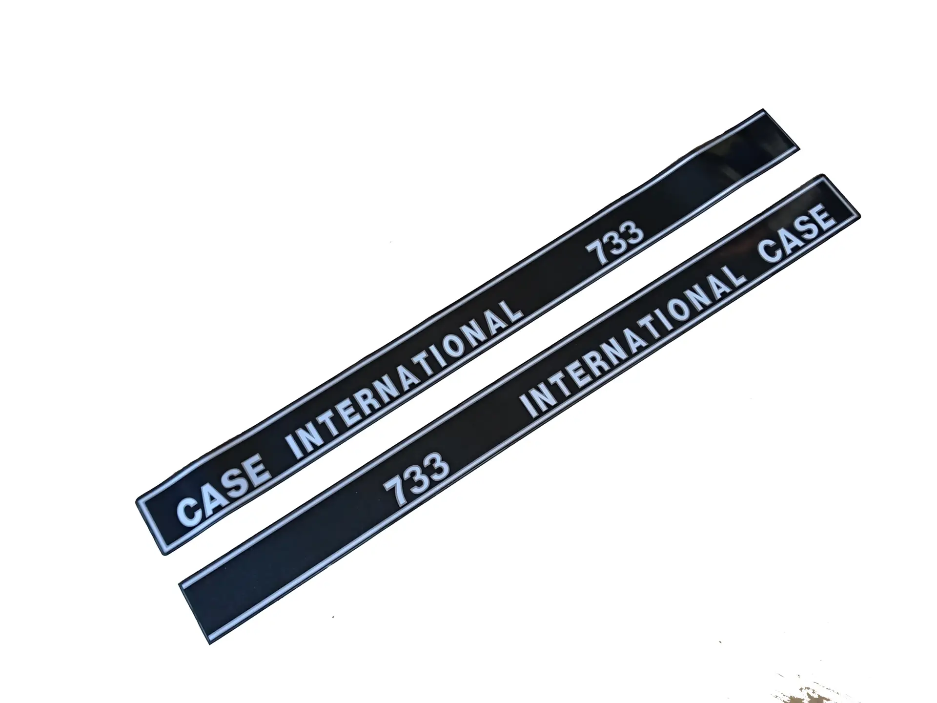 Das letzte Detail für Ihre originalgetreue Restauration: der silberne ‚International‘-Schriftzug für die Motorhaube des IHC Case 733. Er hält, was er verspricht — wie ab Werk.