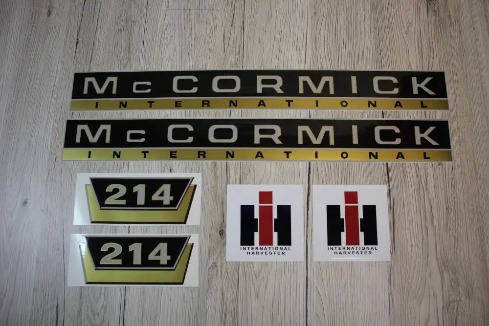 Umfang 2× Mc Cormick (52 cm), 2× Typenaufkleber (16×6,5 cm), 2× IHC-Embleme (9×9 cm)