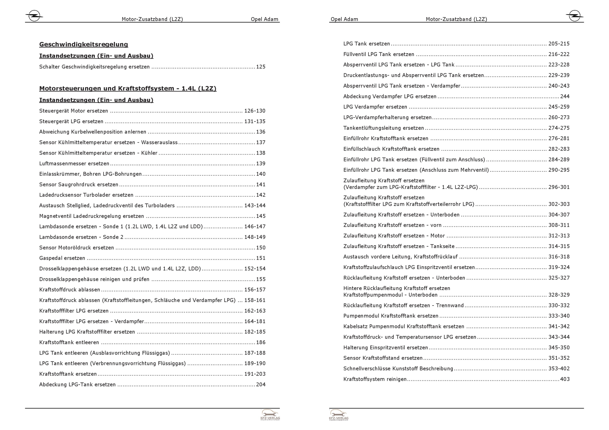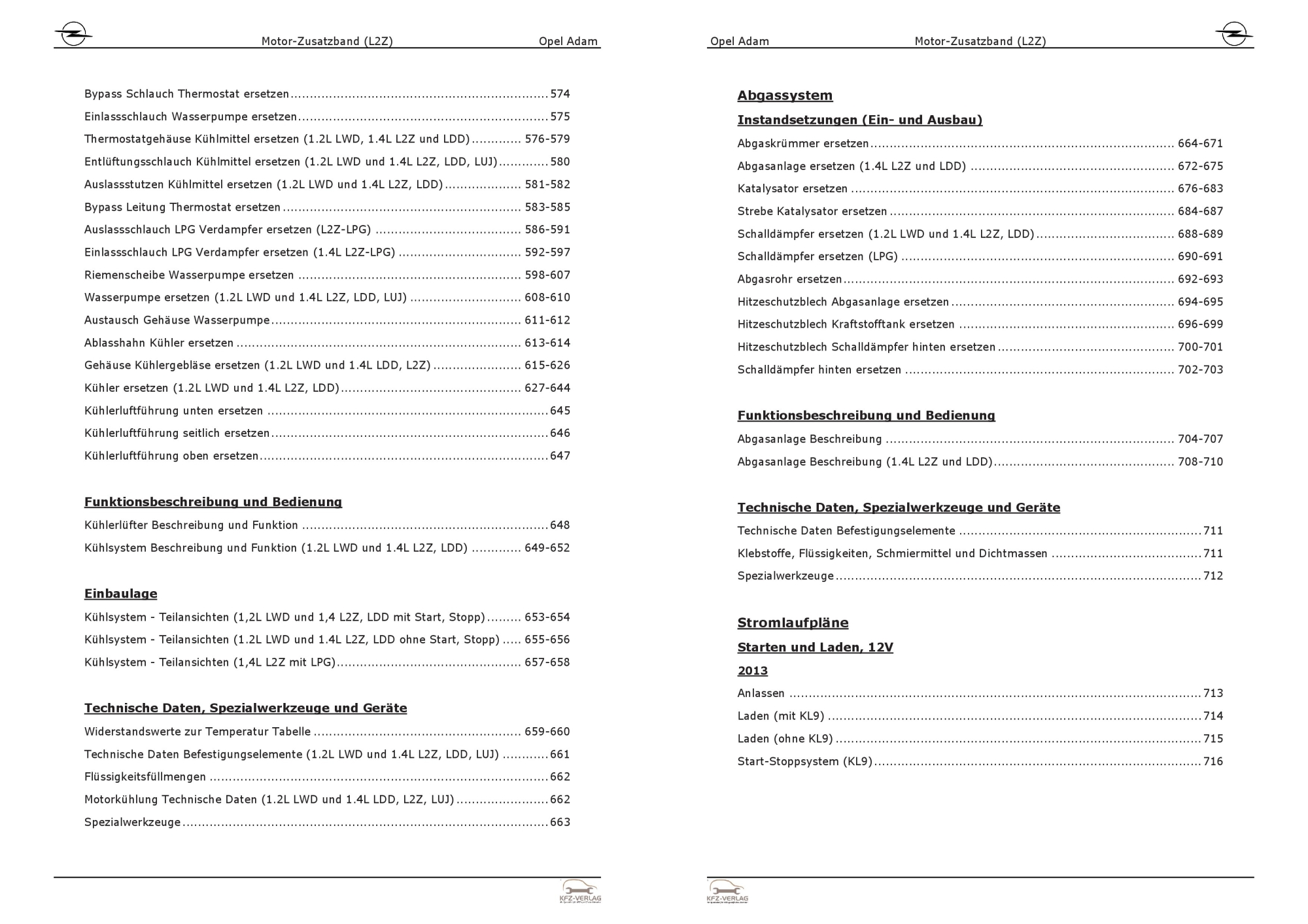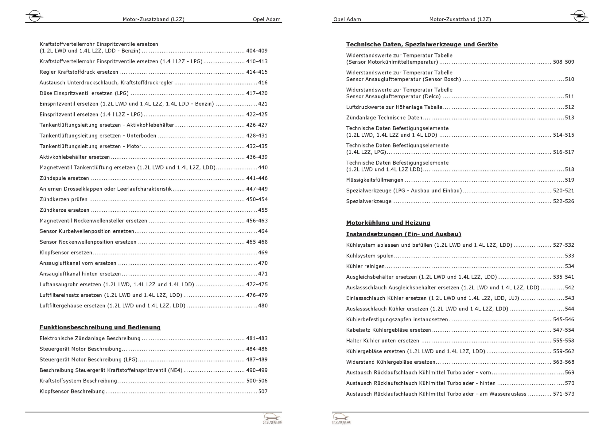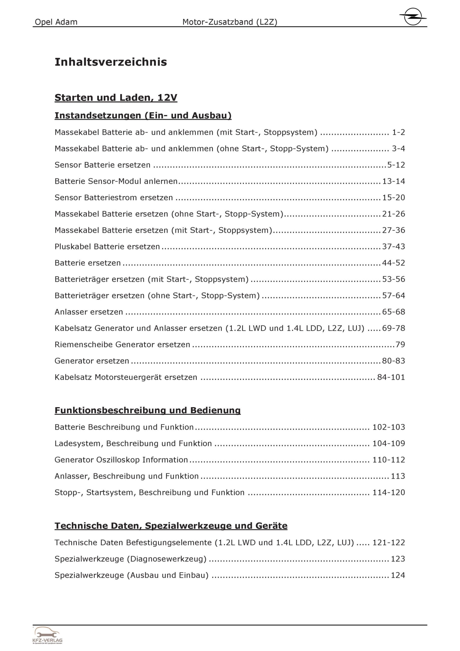 Opel Adam M13 12-19 1,4l Benzin/Gasmotor 87 PS L2Z Zusatzband Reparaturanleitung