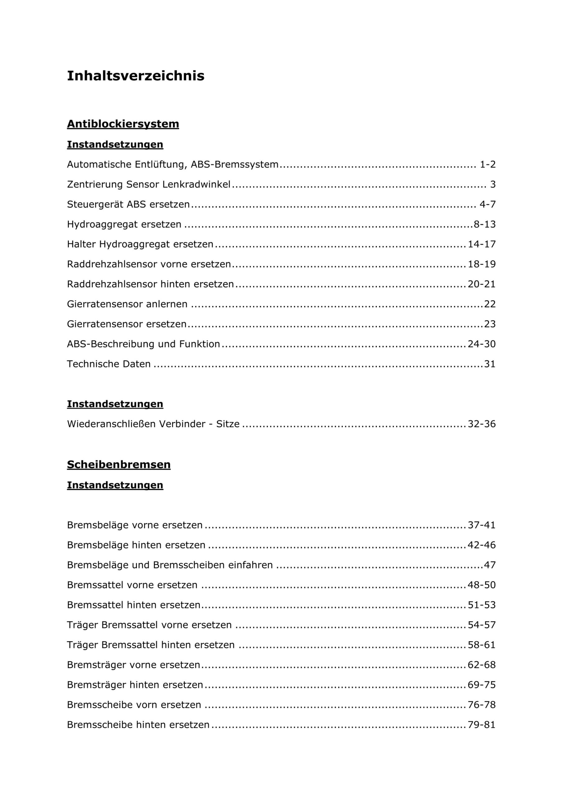 Diese Reparaturanleitung enthält detaillierte Beschreibungen zu Aus- und Einbauarbeiten, Einstell- und Prüfarbeiten sowie zahlreiche Grafiken, Bilder und Explosionszeichnungen. Die Kunststoffringbindung ermöglicht ein problemloses Umschlagen bis zu 180°.