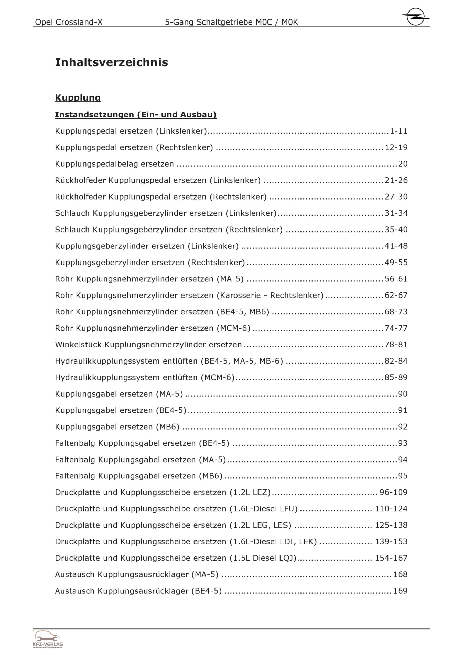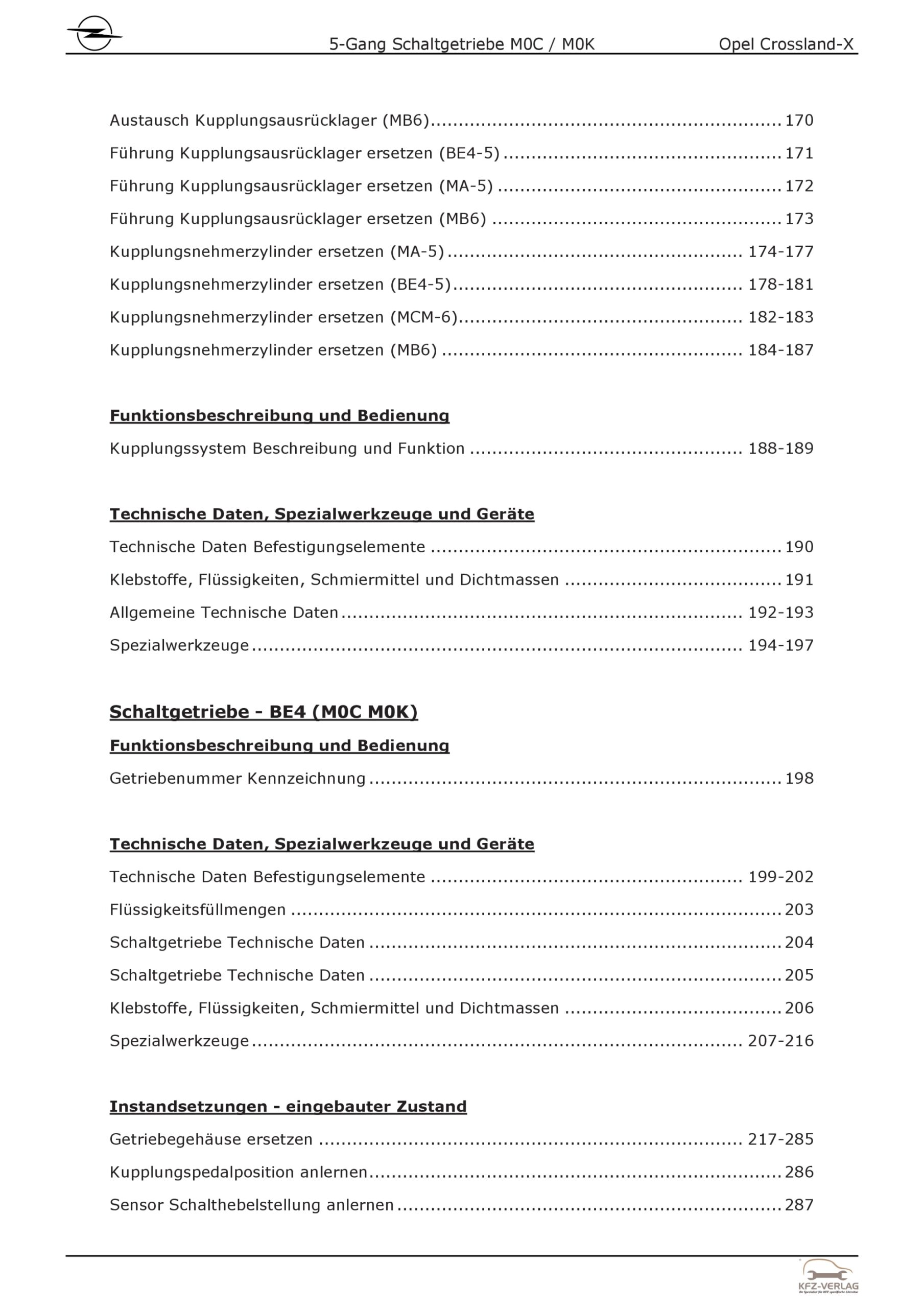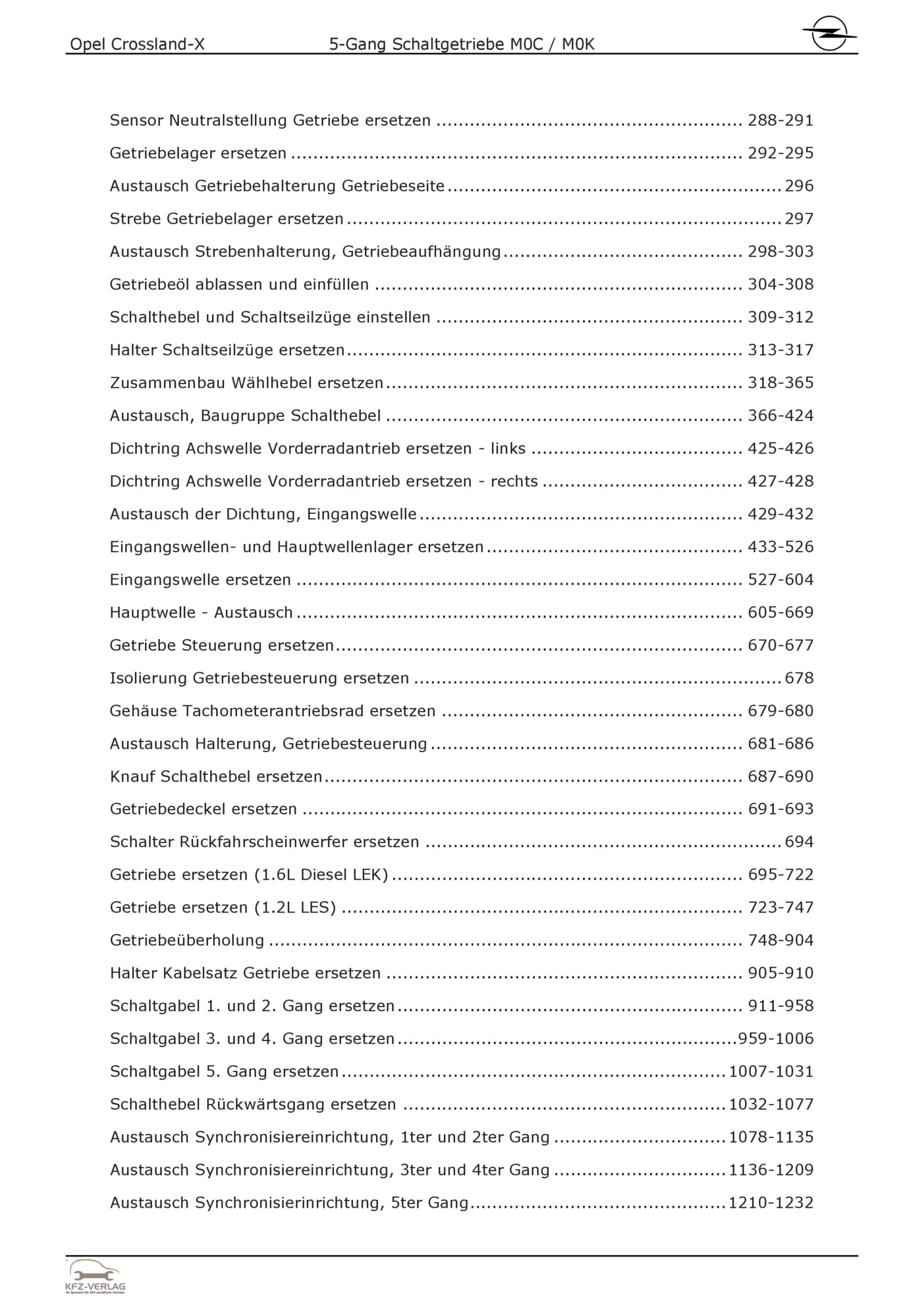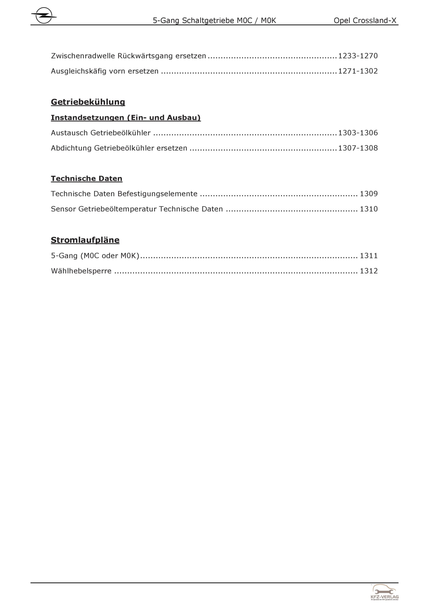 Opel Crossland P17 2017-2024 5-Gang Schaltgetriebe M0K M0C Reparaturanleitung