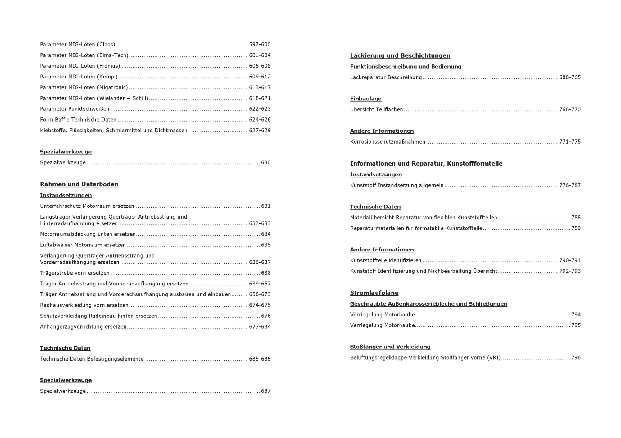 Diese Reparaturanleitung enthält detaillierte Beschreibungen zu Aus- und Einbauarbeiten, Einstell- und Prüfarbeiten sowie zahlreiche Grafiken, Bilder und Explosionszeichnungen. Die Kunststoffringbindung ermöglicht ein problemloses Umschlagen bis zu 180°.