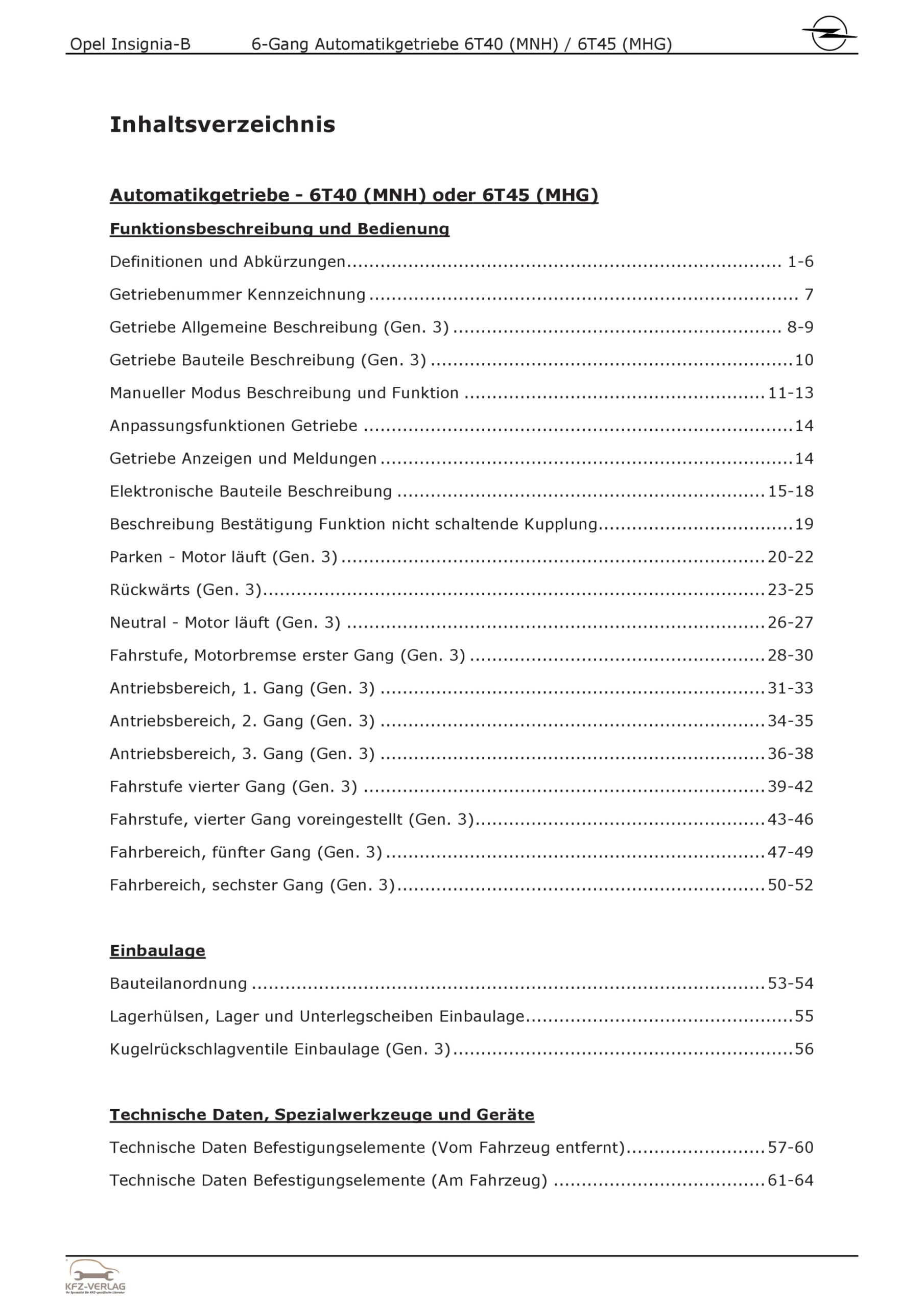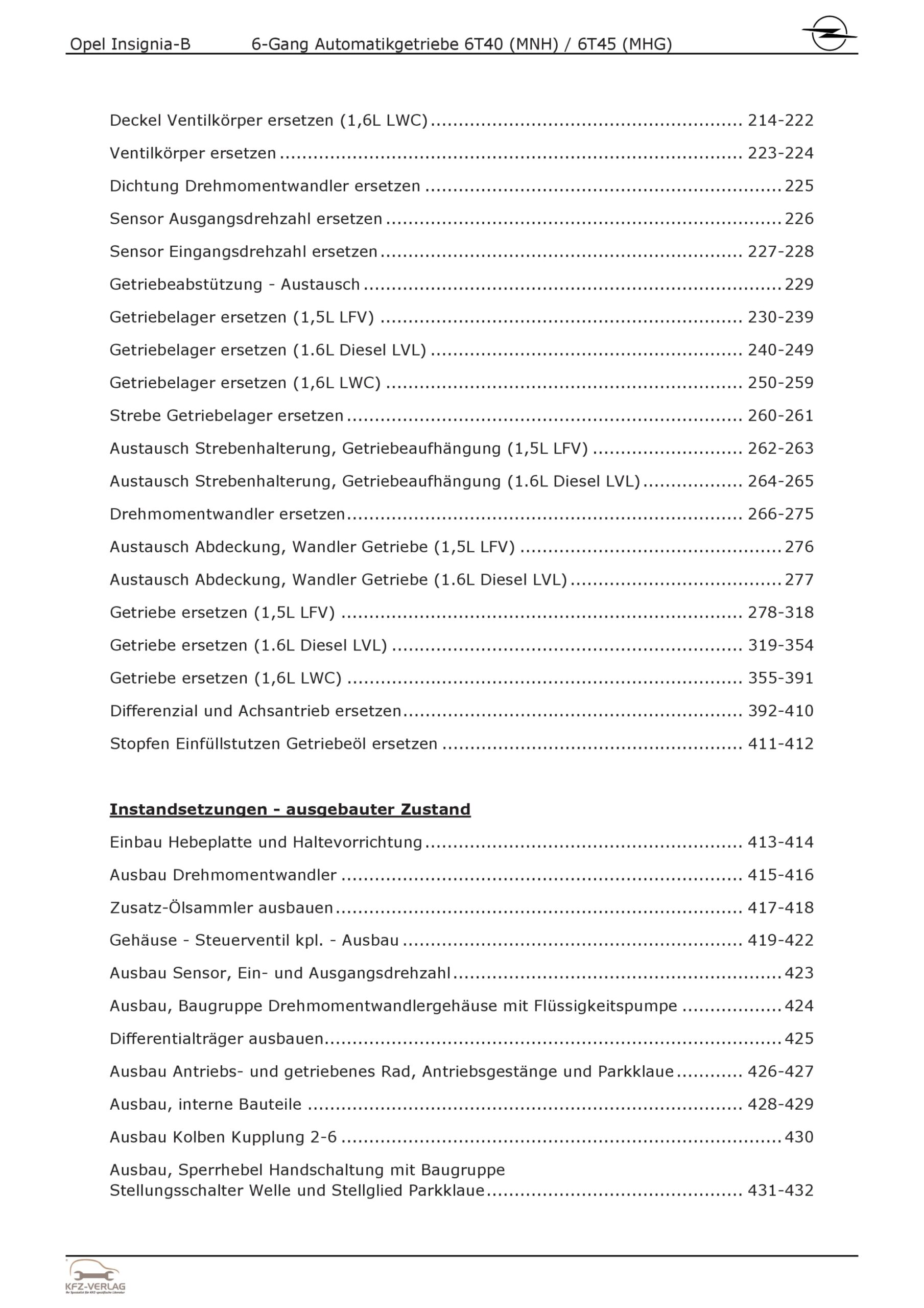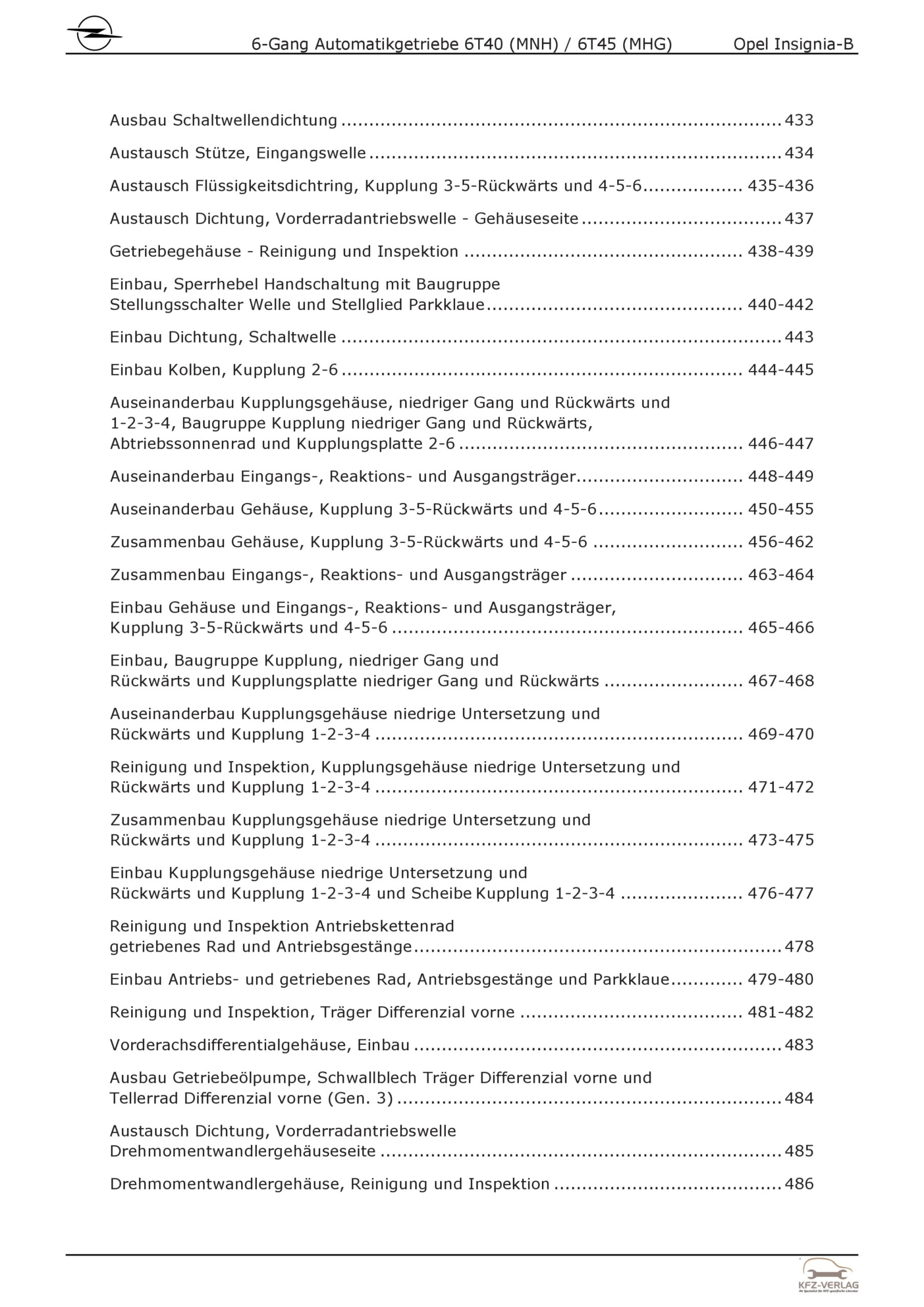 Opel Insignia B Z18 (17-22) 6-Gang Automatikgetriebe MNH, MHG Reparaturanleitung