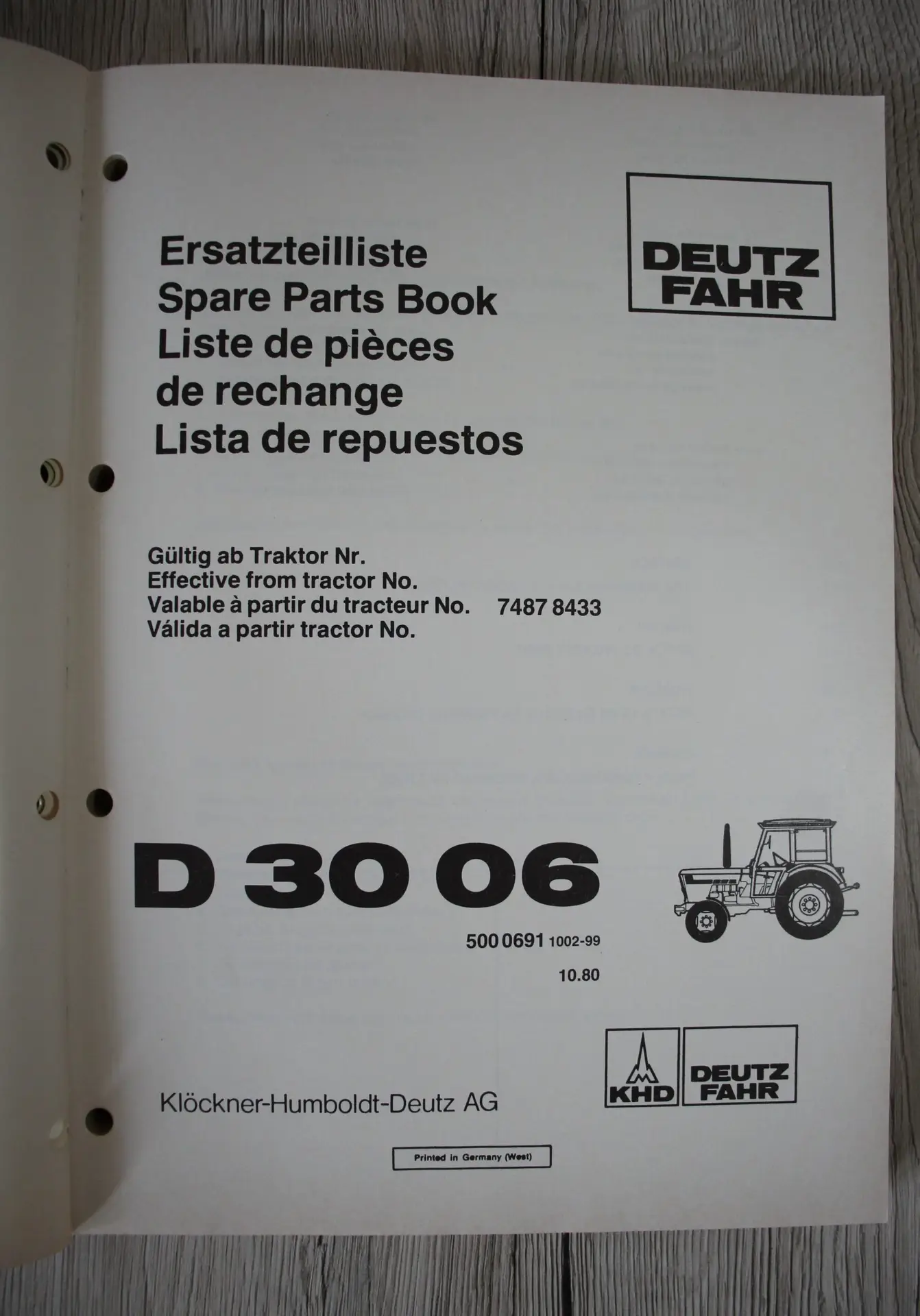 Das letzte Detail für Ihre originalgetreue Restauration: der komplette Original-Ersatzteilkatalog für den Deutz D3006. Unverzichtbar bei Suche, Identifikation und Bestellung von Teilen.