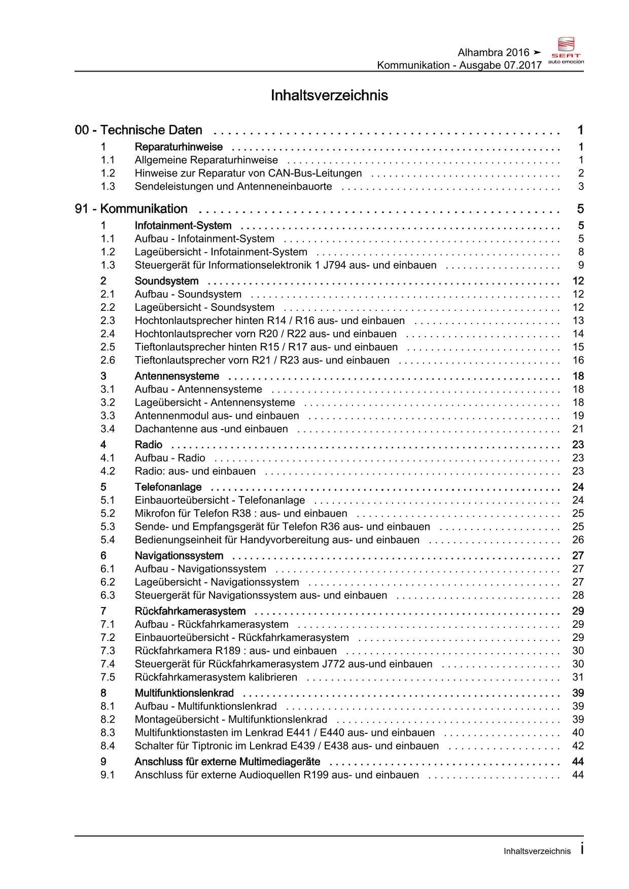 Offizieller Seat Alhambra II Reparaturleitfaden (Typ 71, 711, 7N)