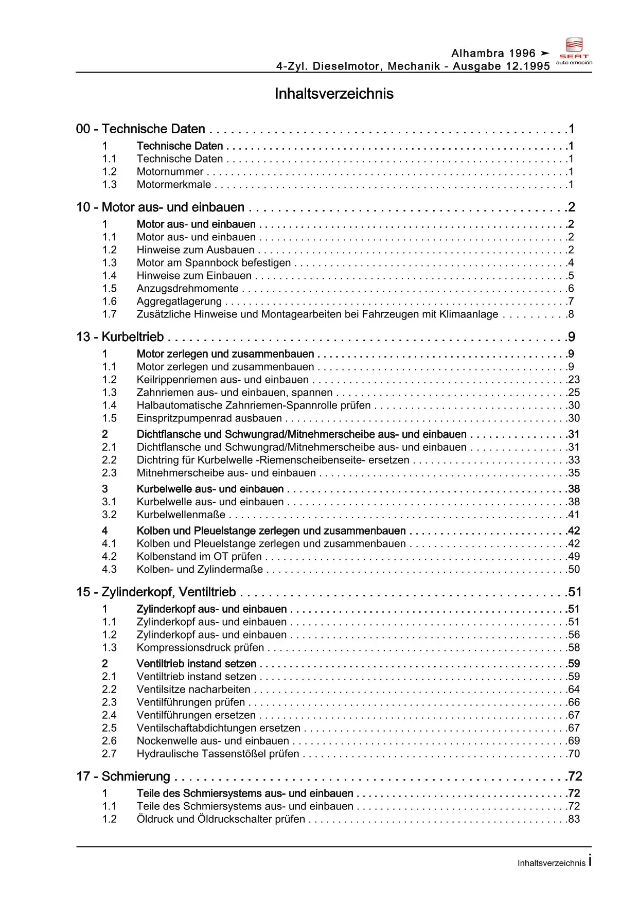 Der Seat Alhambra I Reparaturleitfaden ist ein lizenzierter Nachdruck der originalen Werkstattunterlagen. Diese Anleitung wird von Vertragswerkstätten verwendet und enthält alle technischen Informationen für fachgerechte Reparaturen.