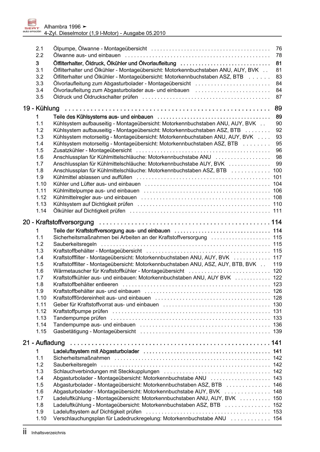 Seat Alhambra 7V 1995-2010 4-Zyl. Dieselmotor 1,9l 90-150 PS Reparaturanleitung