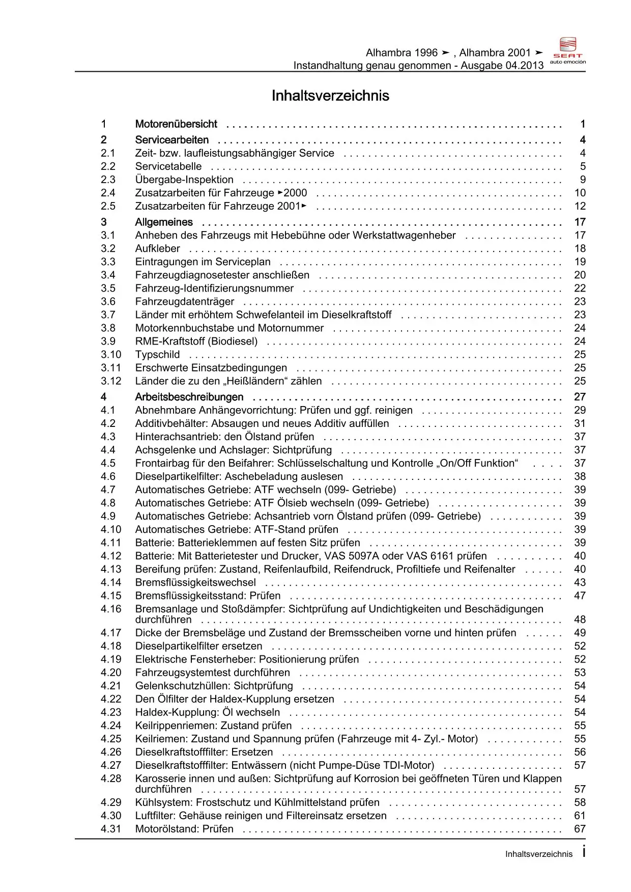 Offizieller Seat Alhambra I Reparaturleitfaden (Typ 7V, 7V8, 7V9, 7M)