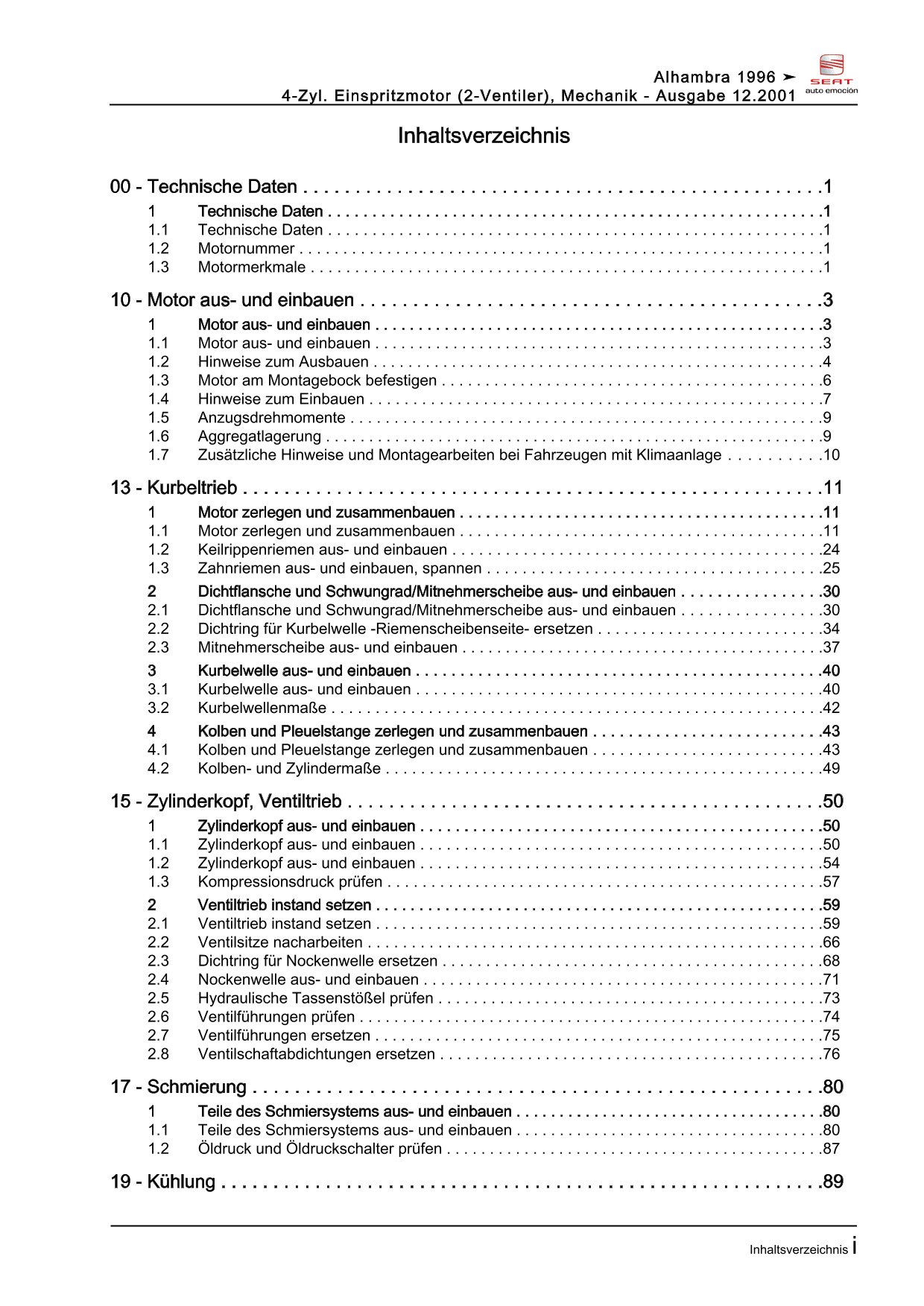 Der Seat Alhambra I Reparaturleitfaden ist ein lizenzierter Nachdruck der originalen Werkstattunterlagen. Diese Anleitung wird von Vertragswerkstätten verwendet und enthält alle technischen Informationen für fachgerechte Reparaturen.