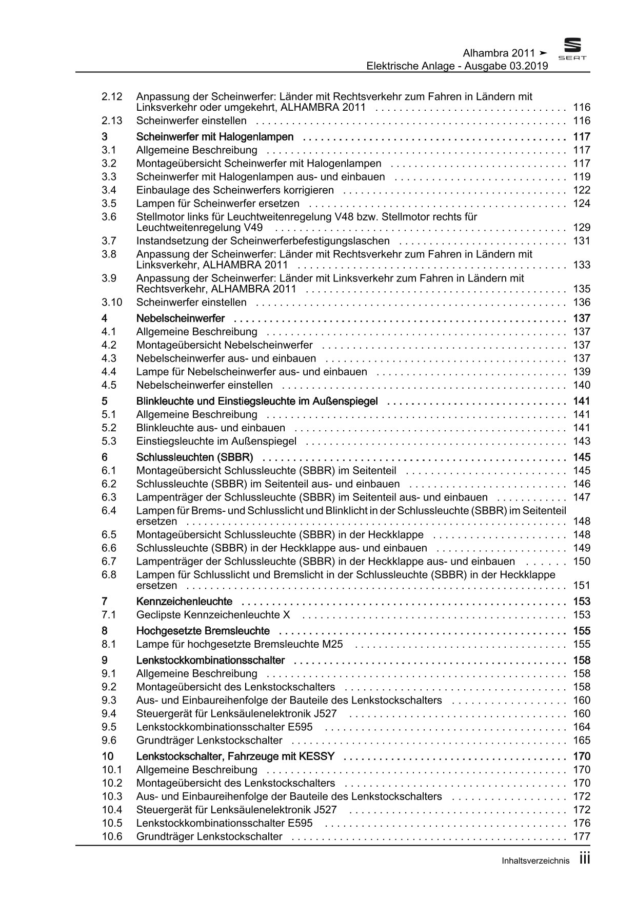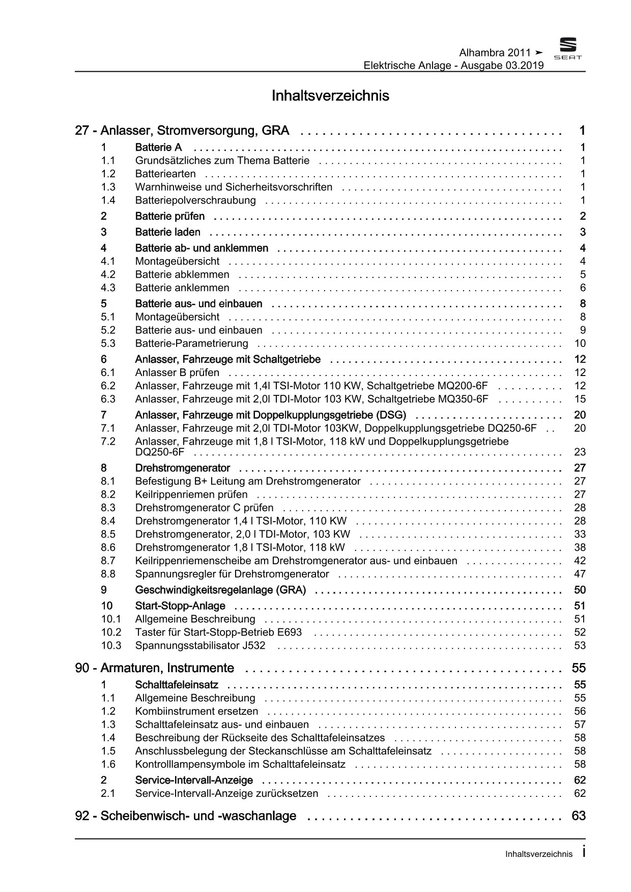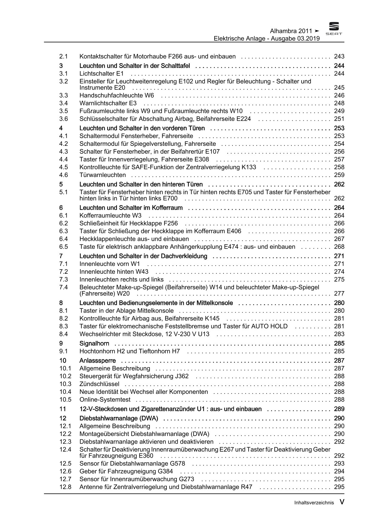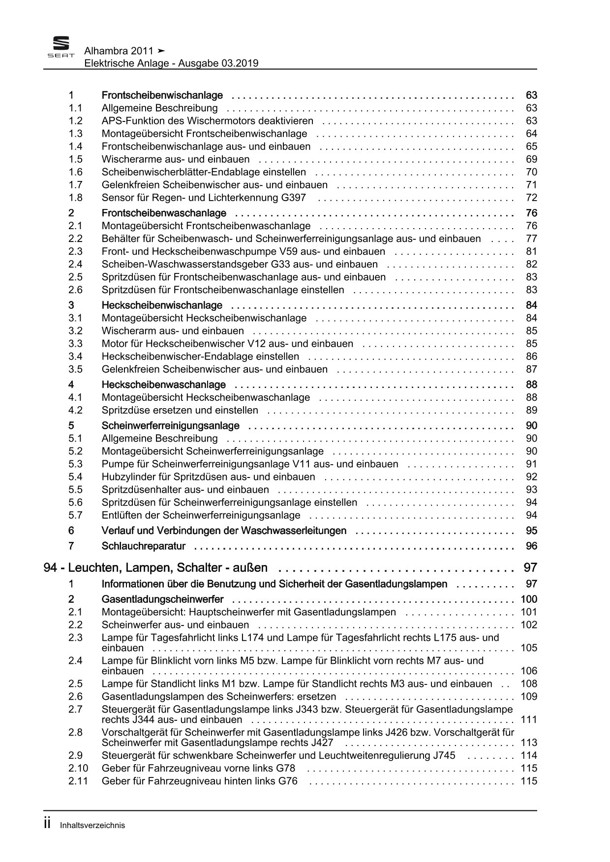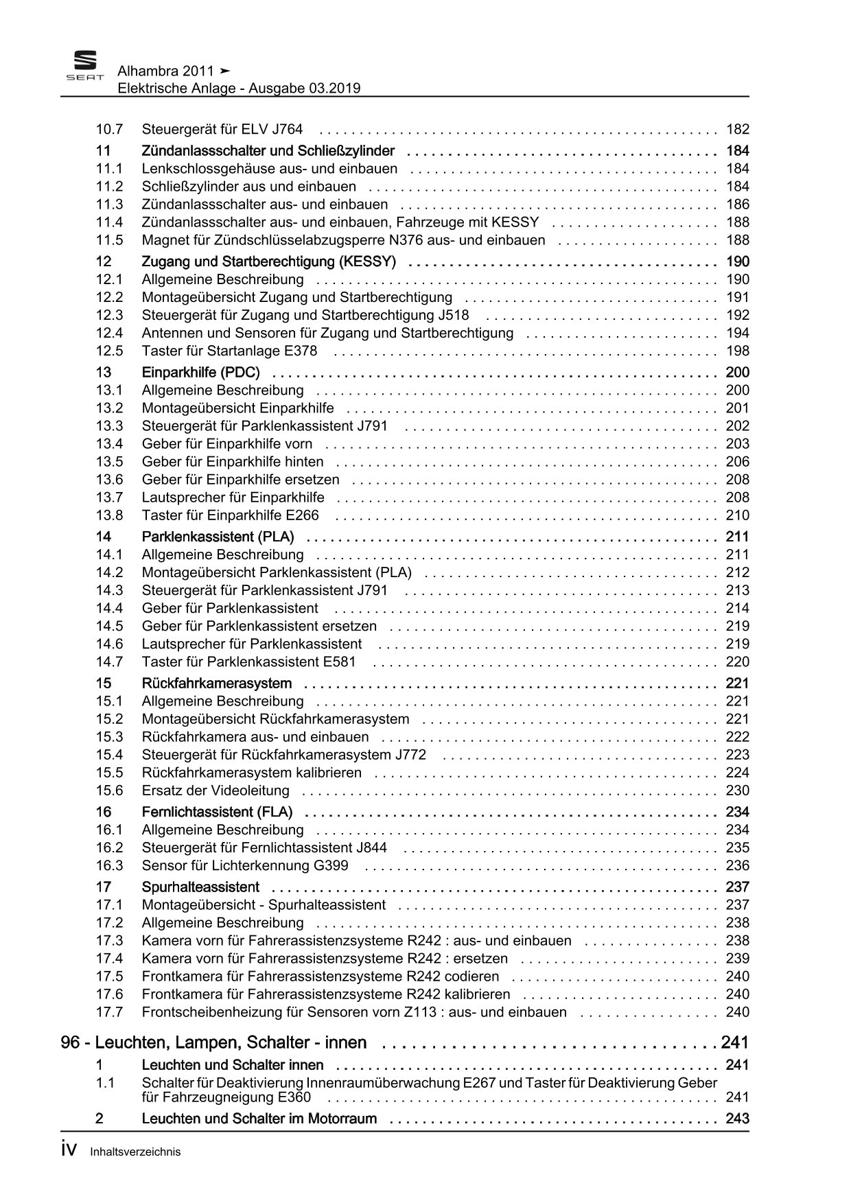 Offizieller Seat Alhambra II Reparaturleitfaden (Typ 71, 710, 7N)