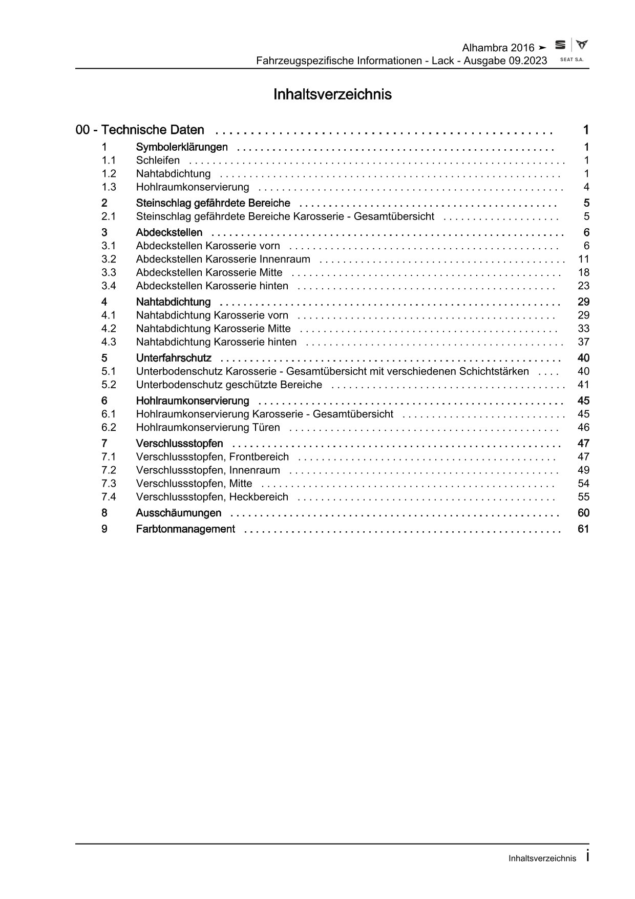 Offizieller Seat Alhambra II Reparaturleitfaden (Typ 71, 711, 7N)