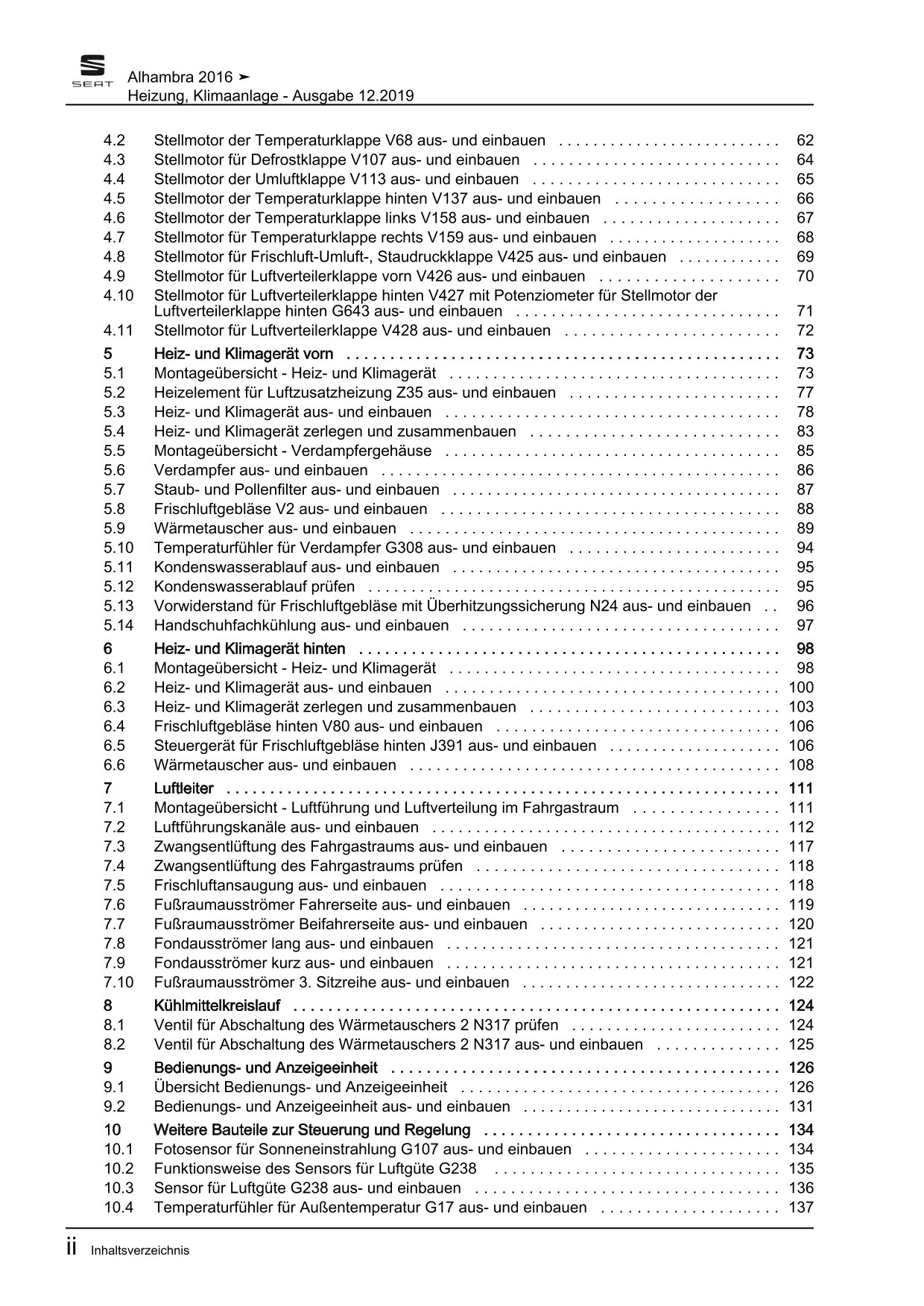 Offizieller Seat Alhambra II Reparaturleitfaden (Typ 71, 711, 7N)