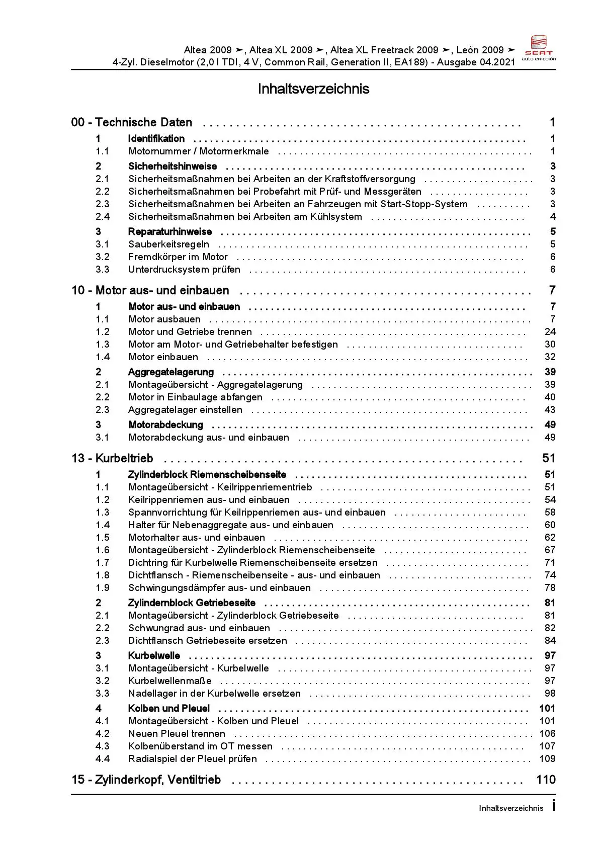 Der Seat Altea Reparaturleitfaden ist ein lizenzierter Nachdruck der originalen Werkstattunterlagen. Diese Anleitung wird von Vertragswerkstätten verwendet und enthält alle technischen Informationen für fachgerechte Reparaturen.