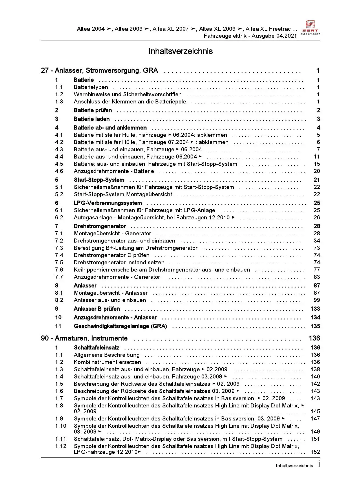 Der Seat Altea Reparaturleitfaden ist ein lizenzierter Nachdruck der originalen Werkstattunterlagen. Diese Anleitung wird von Vertragswerkstätten verwendet und enthält alle technischen Informationen für fachgerechte Reparaturen.