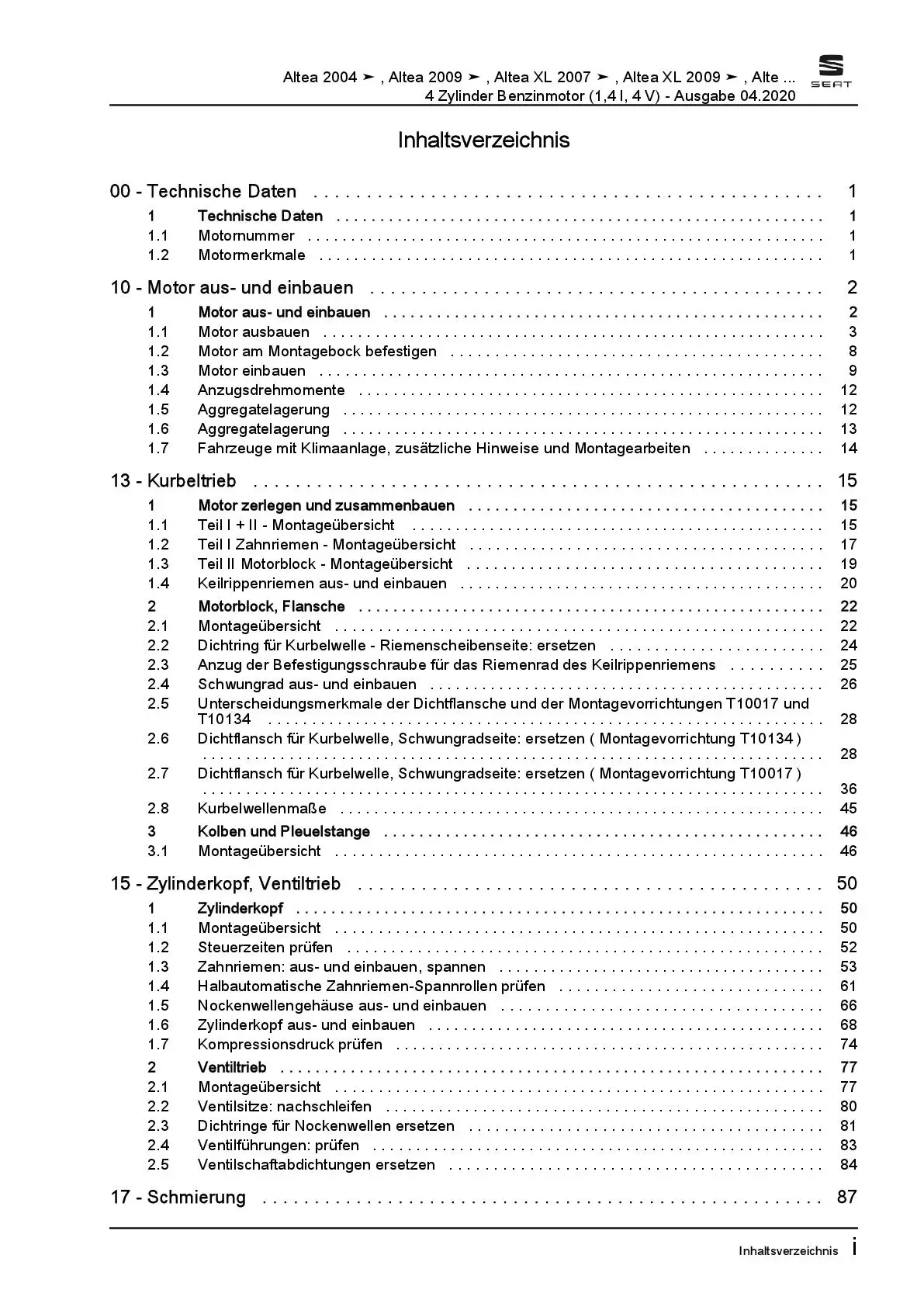 Der Seat Altea Reparaturleitfaden ist ein lizenzierter Nachdruck der originalen Werkstattunterlagen. Diese Anleitung wird von Vertragswerkstätten verwendet und enthält alle technischen Informationen für fachgerechte Reparaturen.