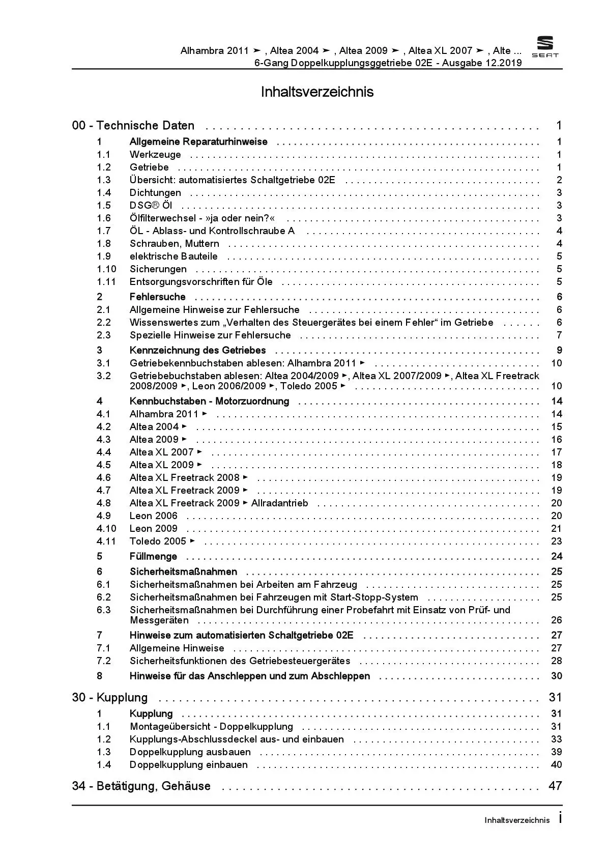 Der Seat Altea XL, XL Freetrack Reparaturleitfaden ist ein lizenzierter Nachdruck der originalen Werkstattunterlagen. Diese Anleitung wird von Vertragswerkstätten verwendet und enthält alle technischen Informationen für fachgerechte Reparaturen.
