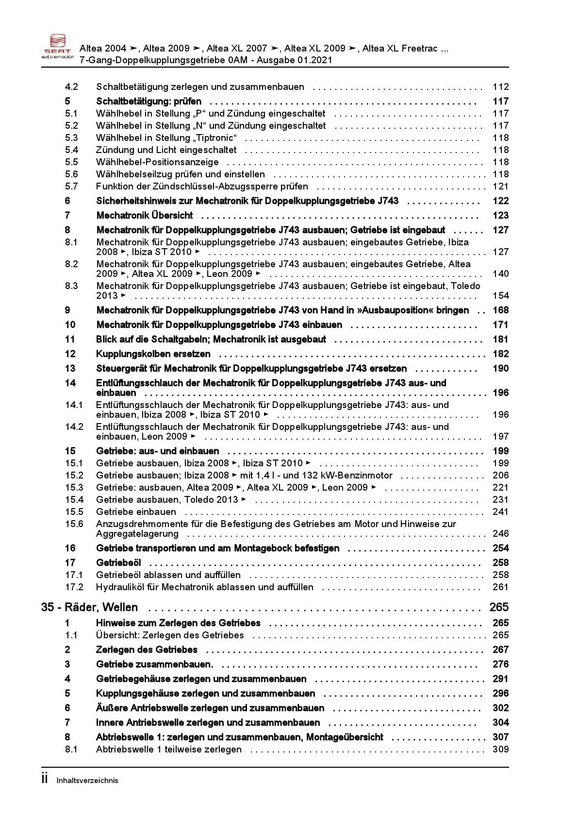 Der Seat Altea XL, XL Freetrack Reparaturleitfaden ist ein lizenzierter Nachdruck der originalen Werkstattunterlagen. Diese Anleitung wird von Vertragswerkstätten verwendet und enthält alle technischen Informationen für fachgerechte Reparaturen.