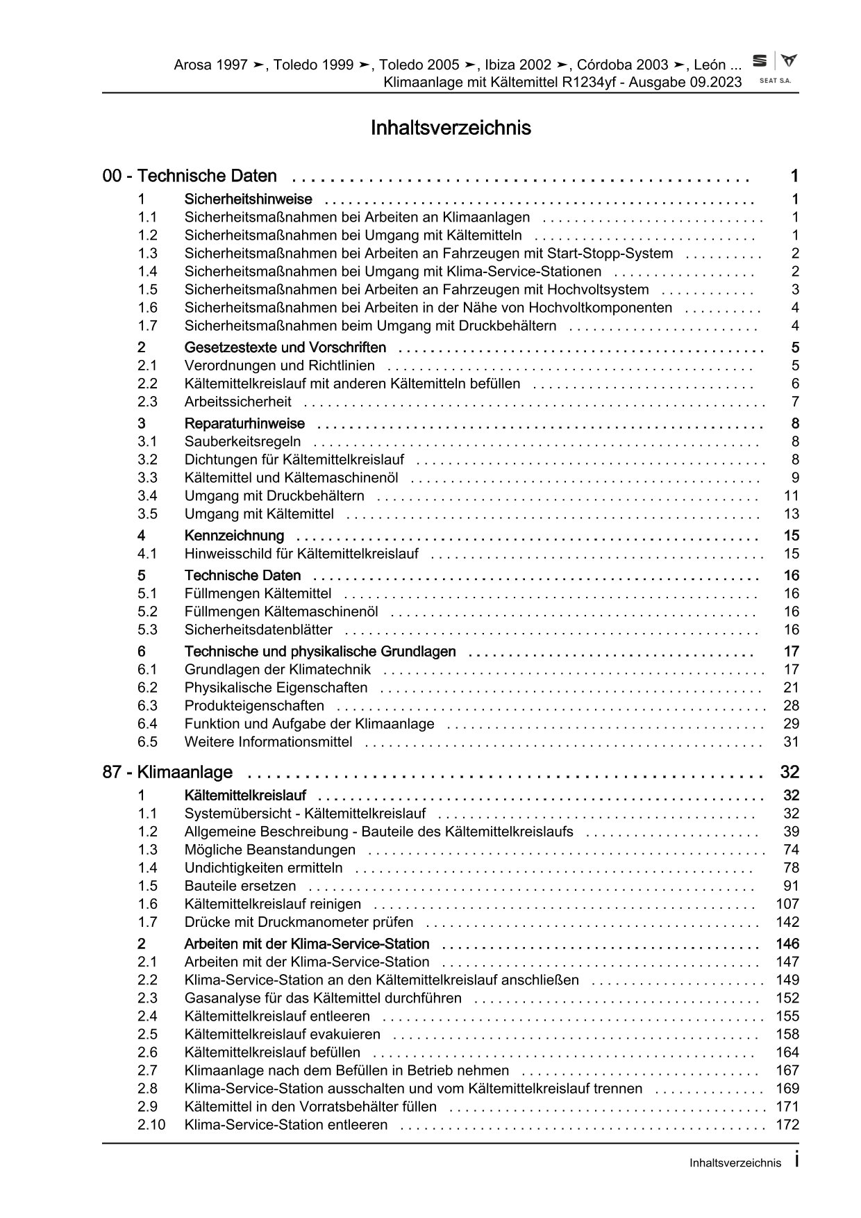 Seat Arosa 6H 1997-2004 Klimaanlagen mit Kältemittel R1234yf Reparaturanleitung