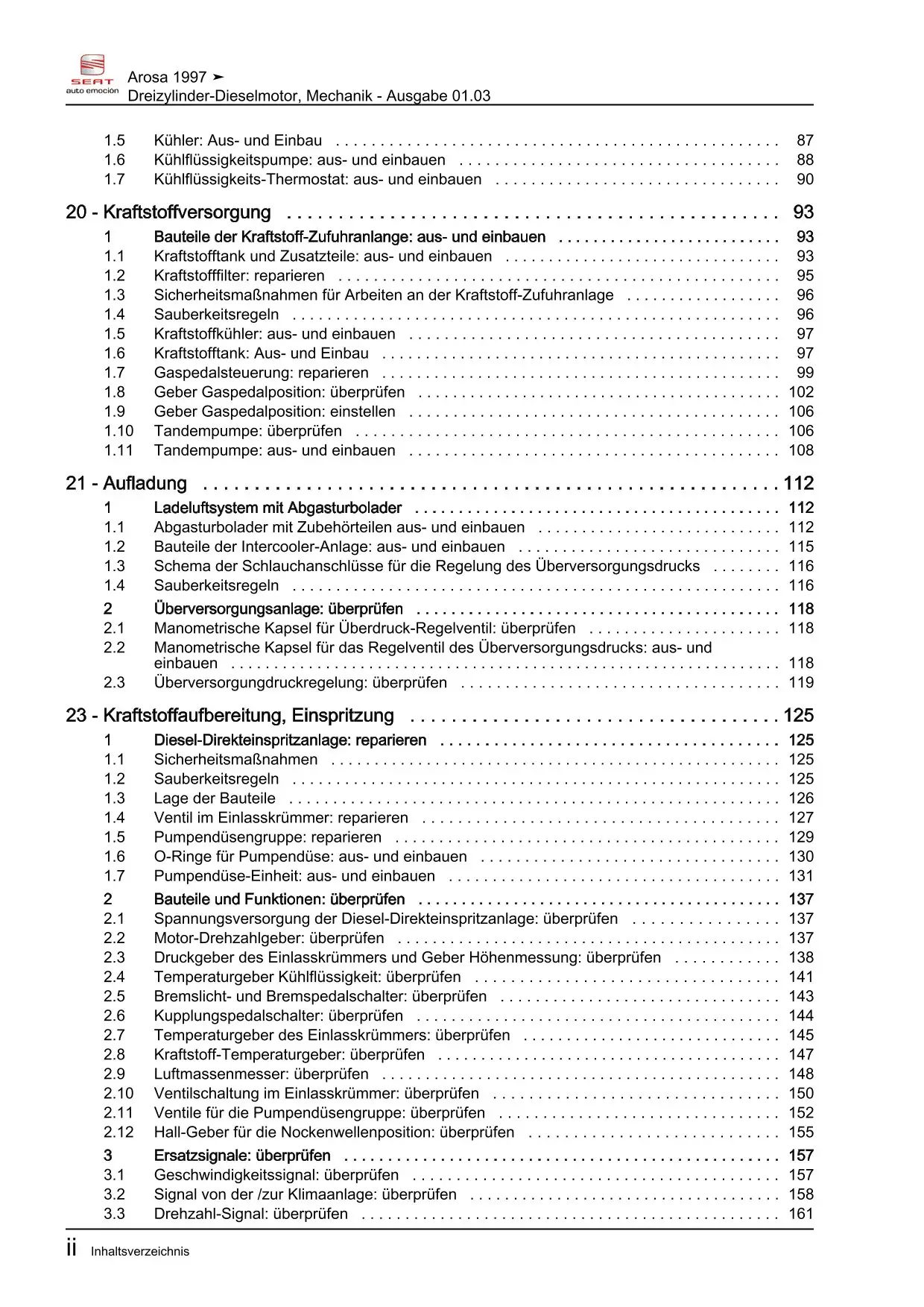 Der Seat Arosa inkl. 3L Reparaturleitfaden ist ein lizenzierter Nachdruck der originalen Werkstattunterlagen. Diese Anleitung wird von Vertragswerkstätten verwendet und enthält alle technischen Informationen für fachgerechte Reparaturen.