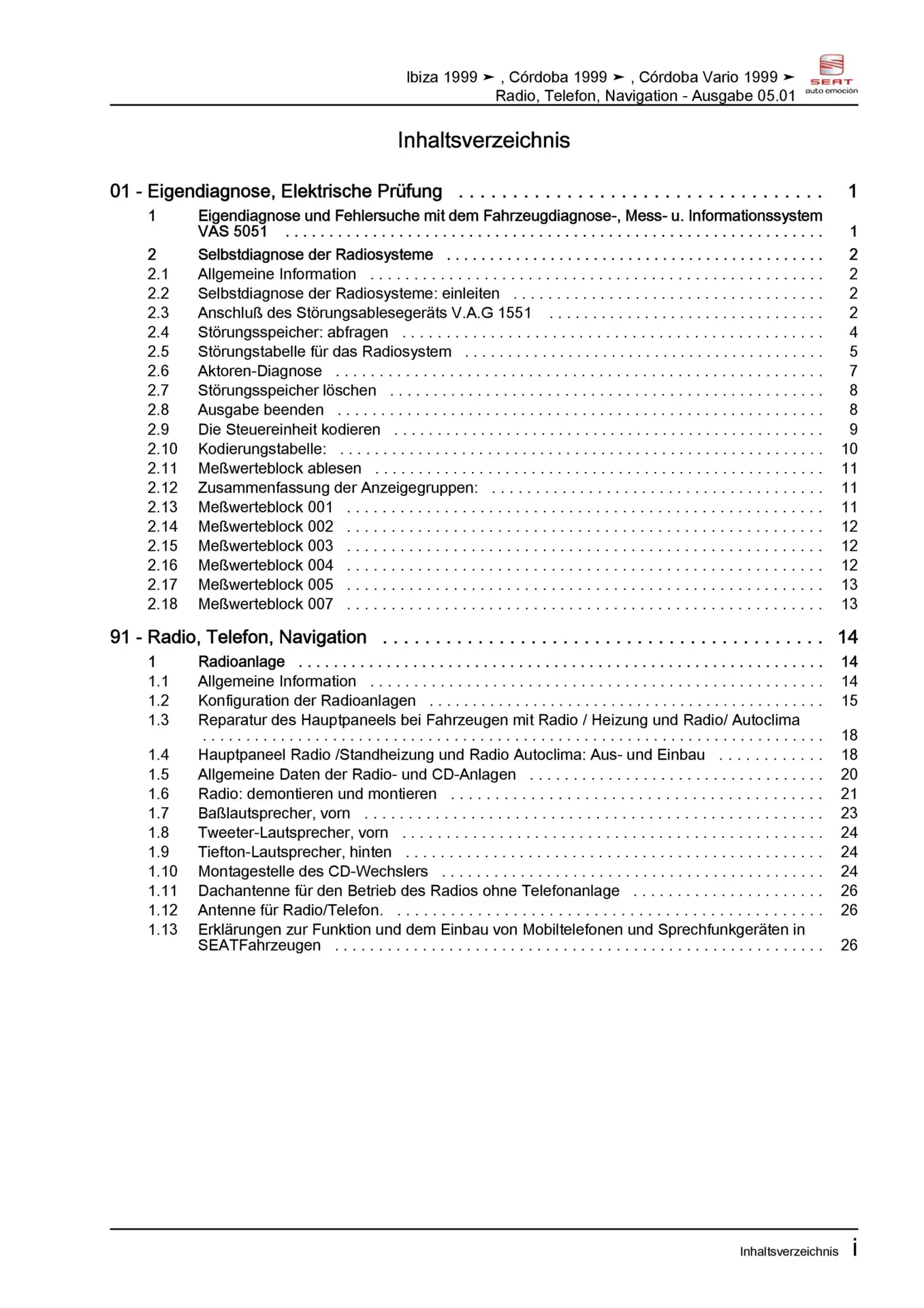 Seat Cordoba 6K 1999-2002 Kommunikation Radio Telefon Navi Reparaturanleitung