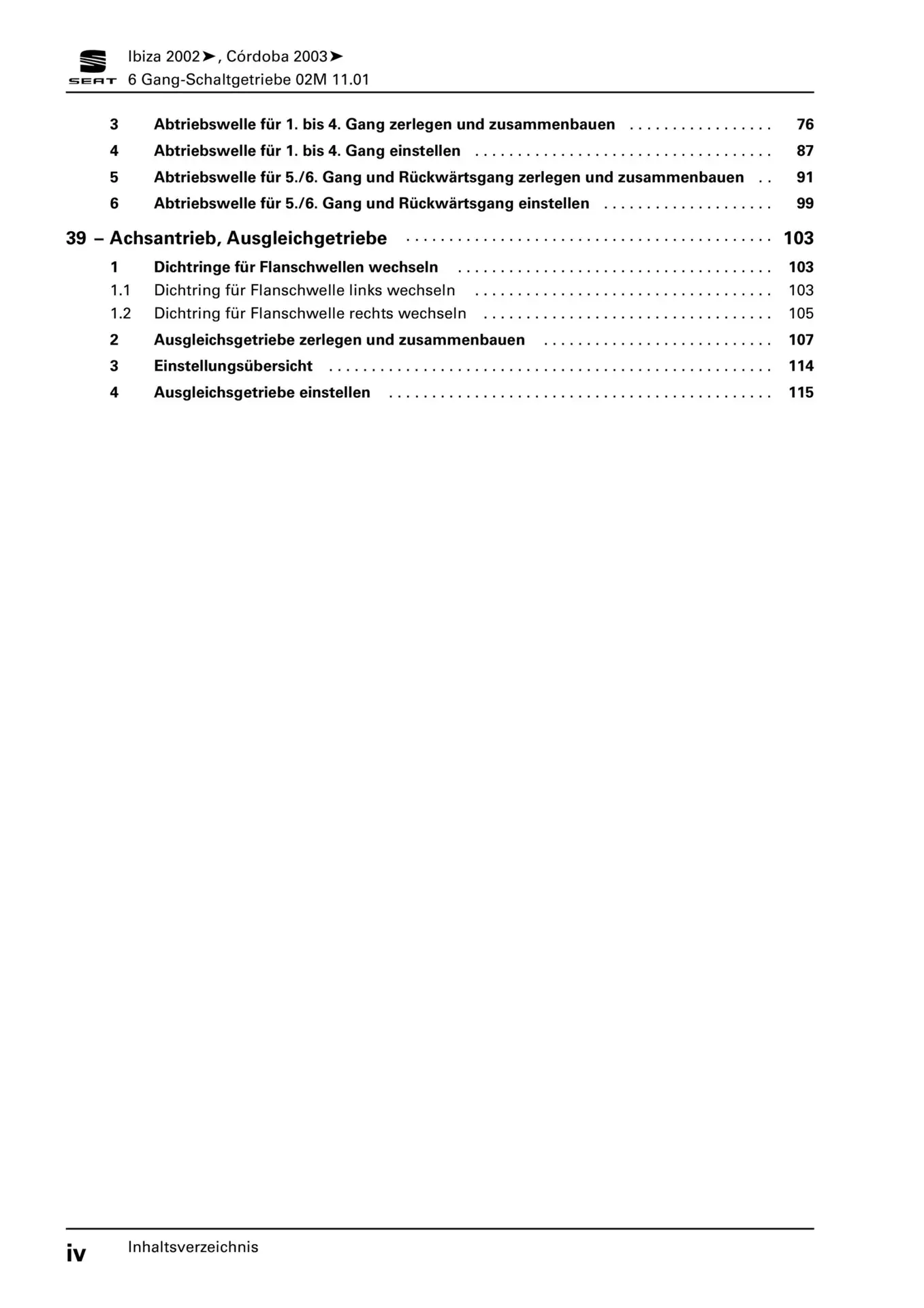 Offizieller Seat Cordoba Reparaturleitfaden (Typ 6L, 6L2)