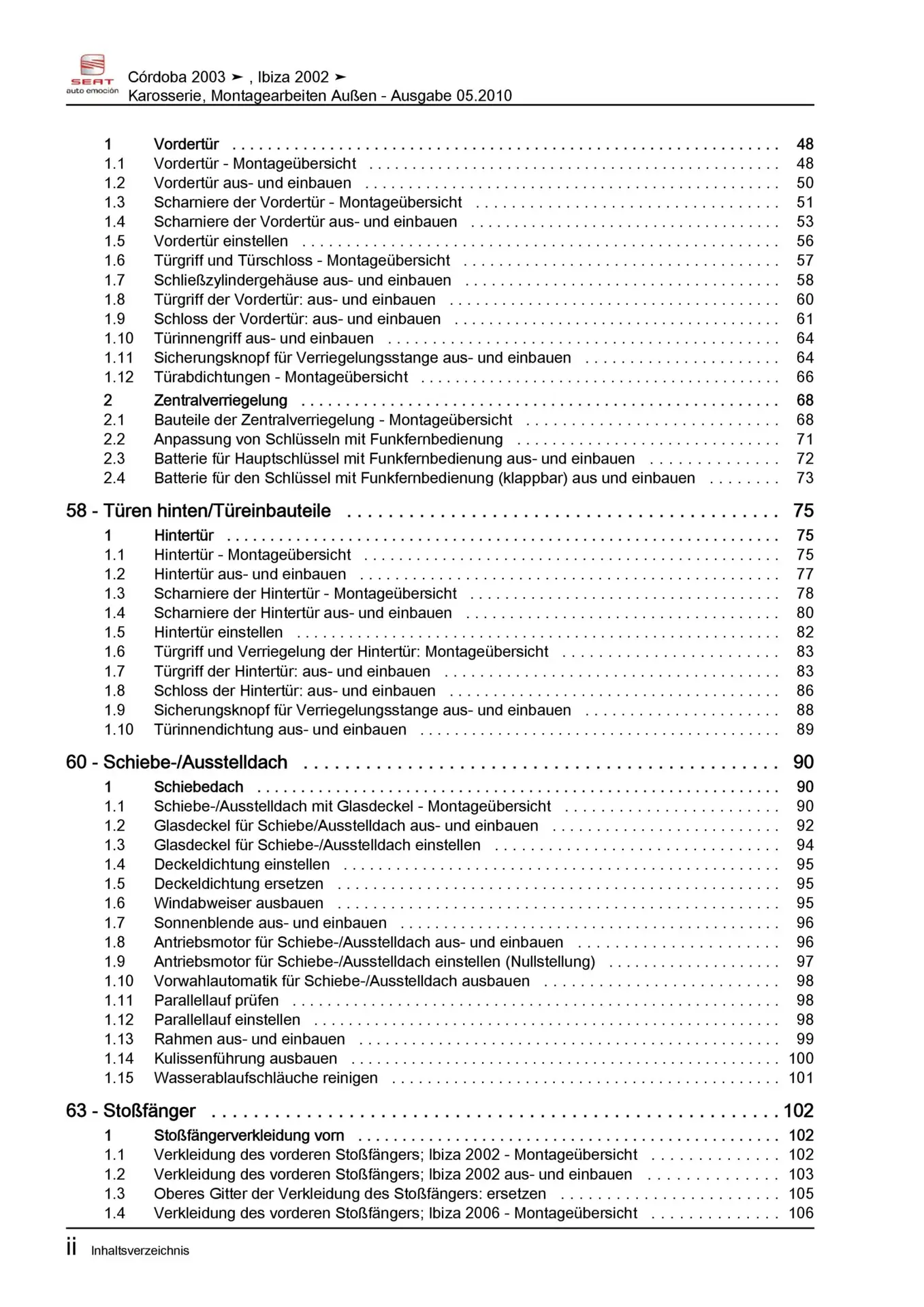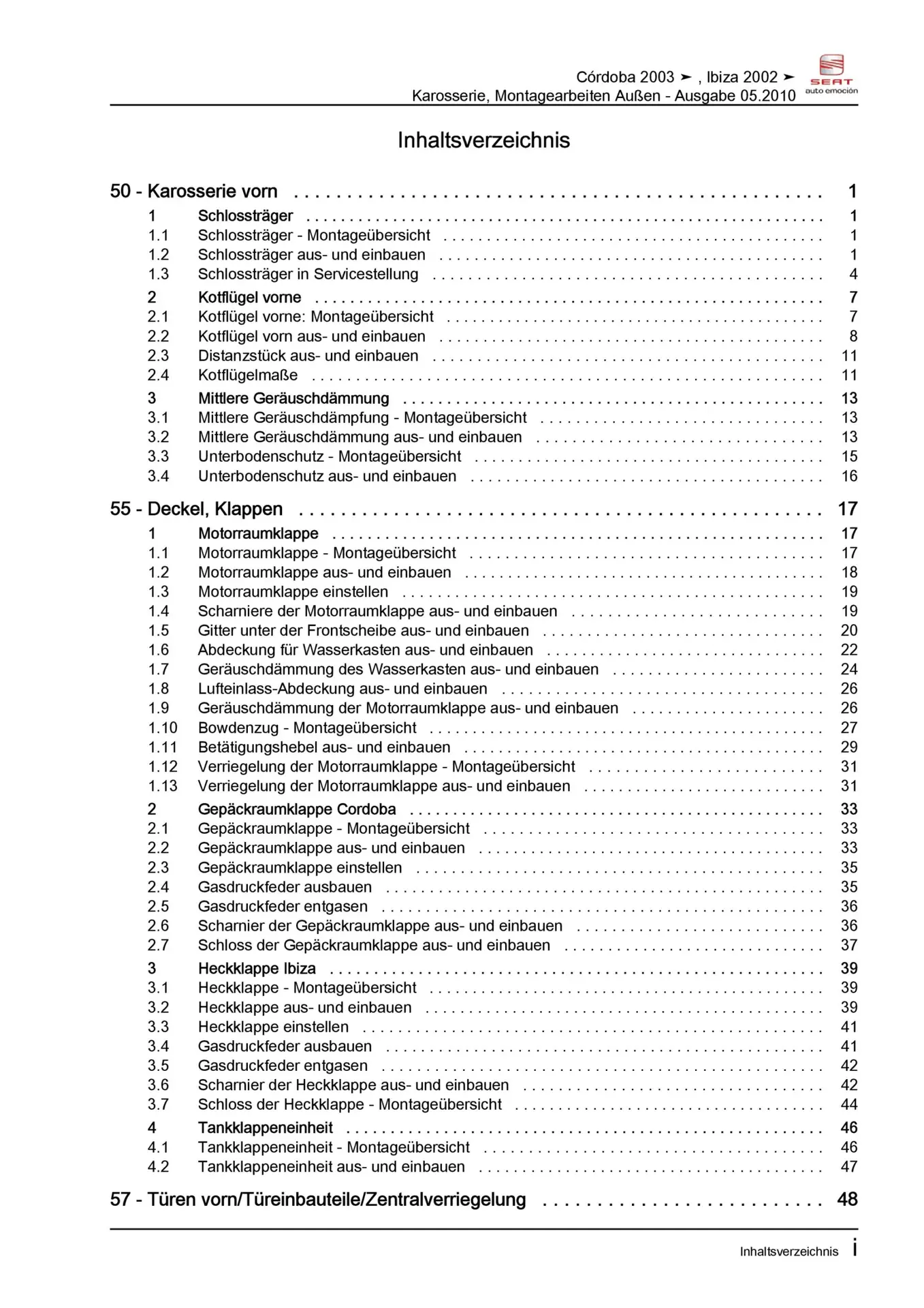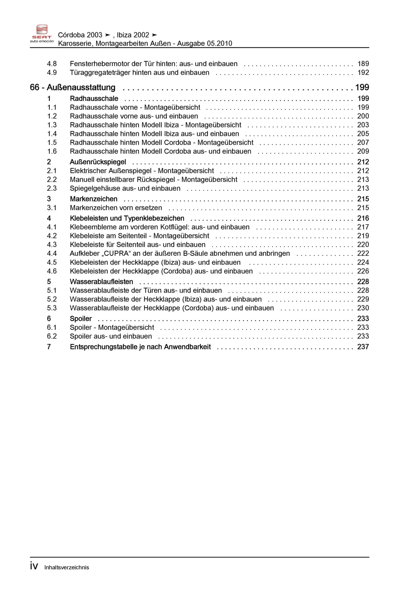 Offizieller Seat Cordoba Reparaturleitfaden (Typ 6L, 6L2)