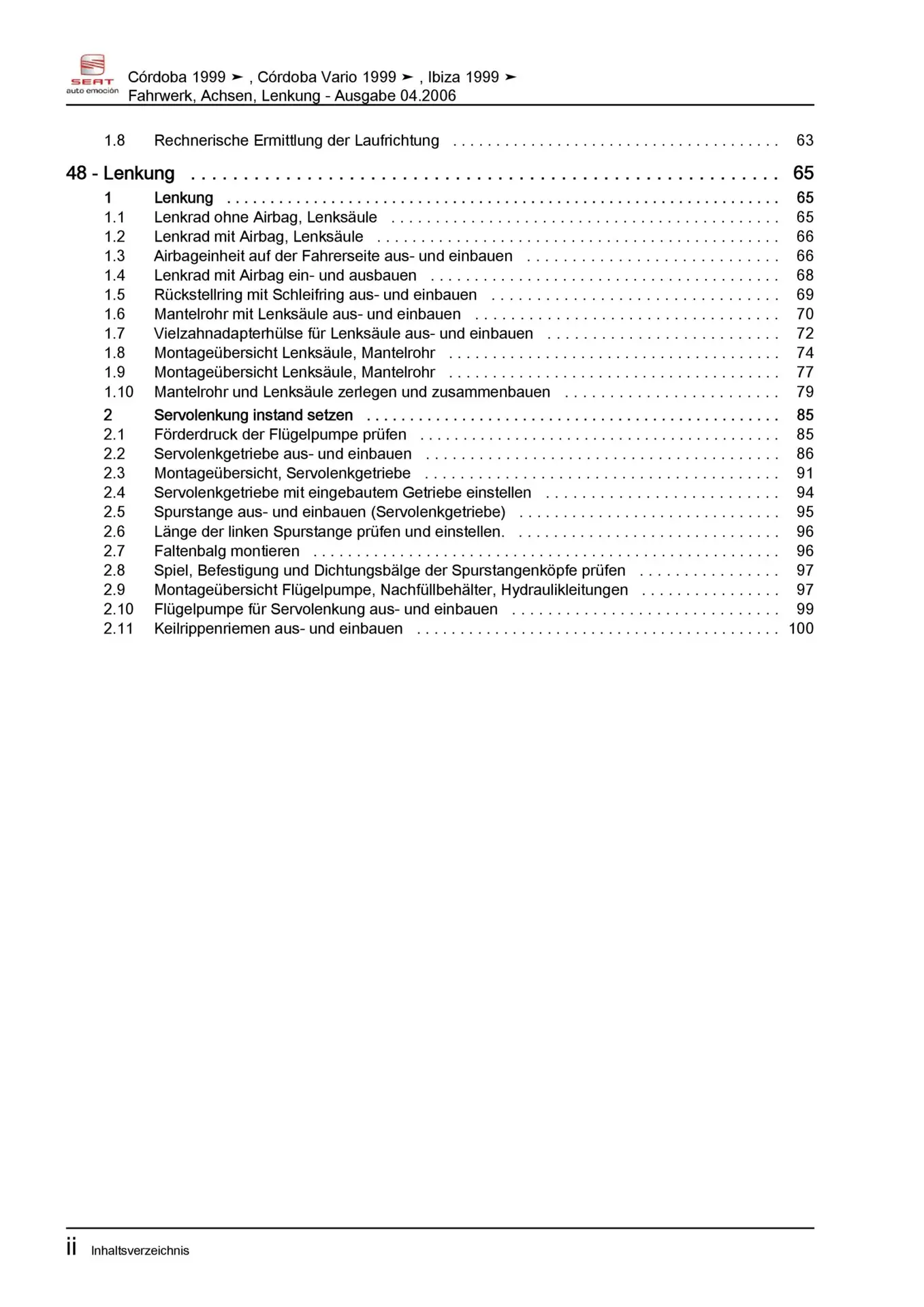 Der Seat Cordoba inkl. Vario Reparaturleitfaden ist ein lizenzierter Nachdruck der originalen Werkstattunterlagen. Diese Anleitung wird von Vertragswerkstätten verwendet und enthält alle technischen Informationen für fachgerechte Reparaturen.