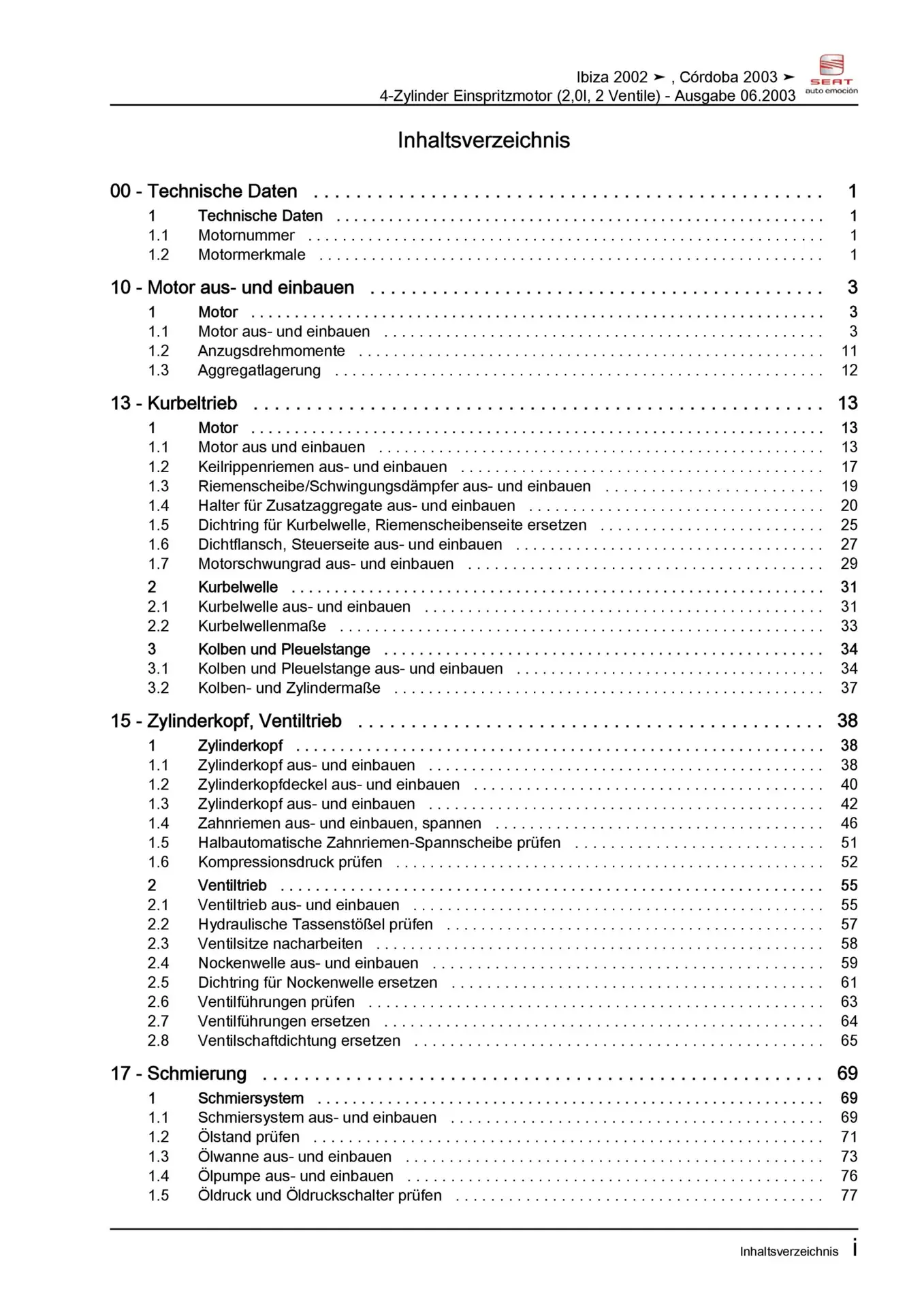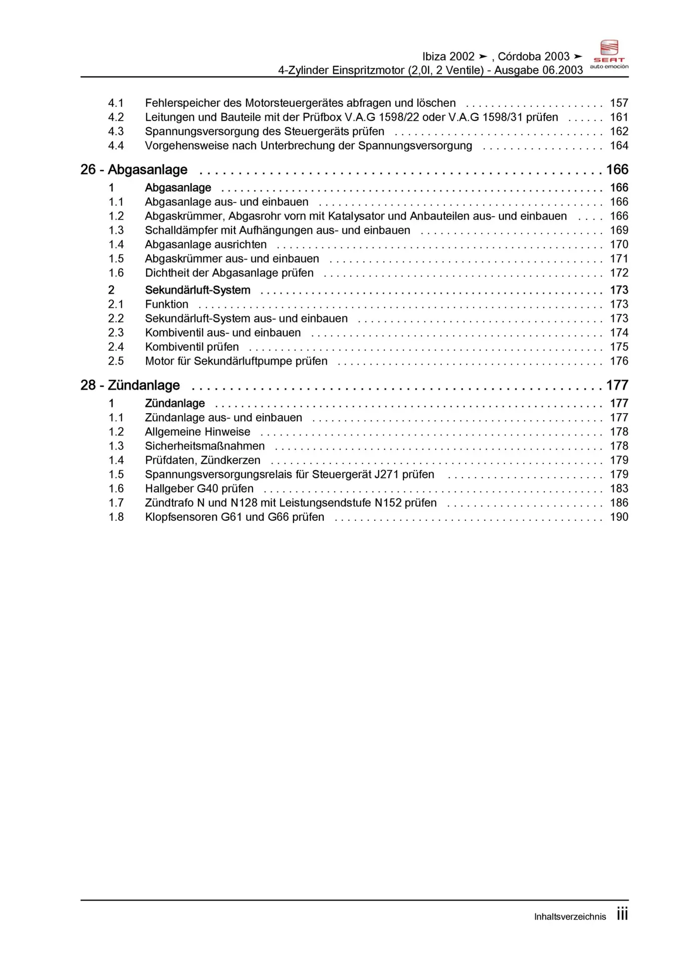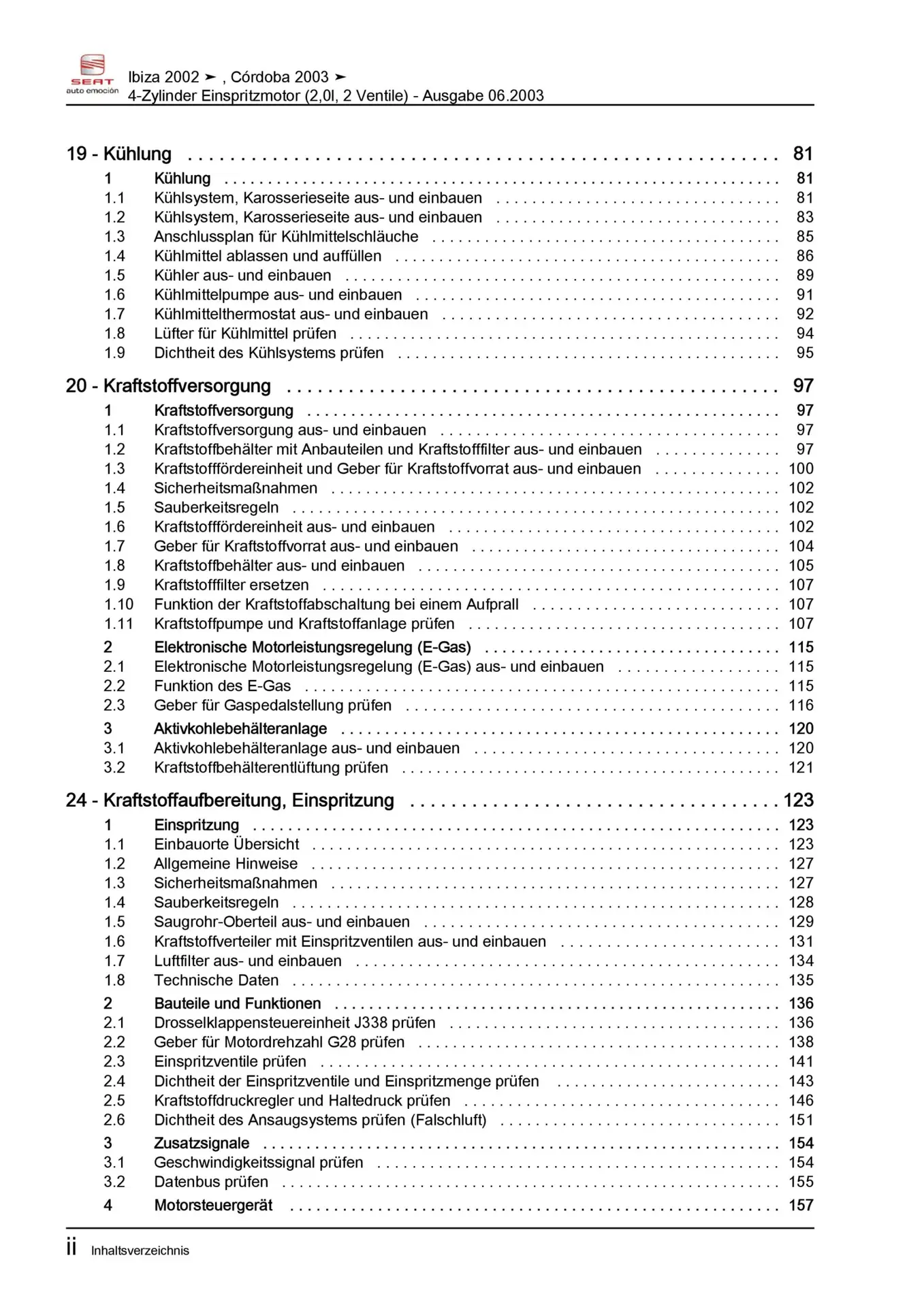 Offizieller Seat Cordoba Reparaturleitfaden (Typ 6L, 6L2)