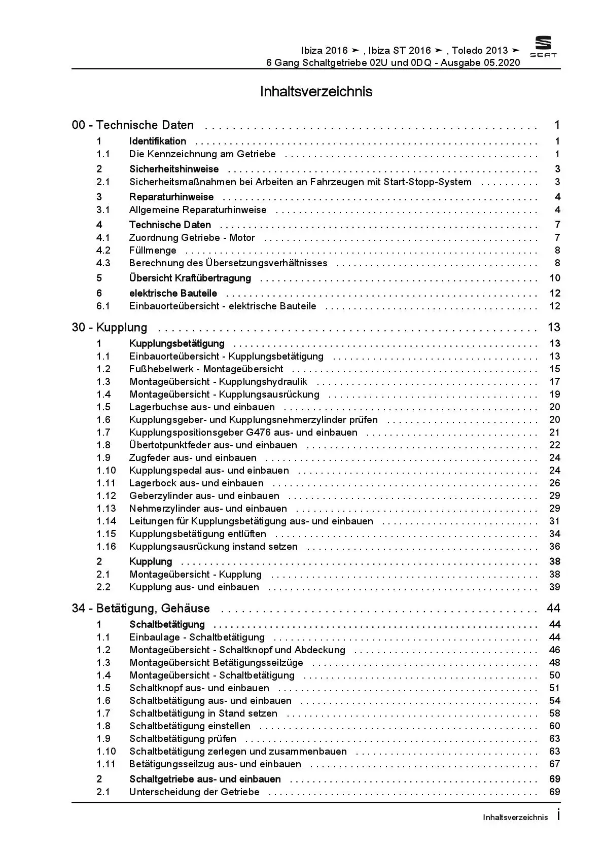 Seat Ibiza 6P (15-17) 6 Gang Schaltgetriebe 02U 0DQ Kupplung Reparaturanleitung