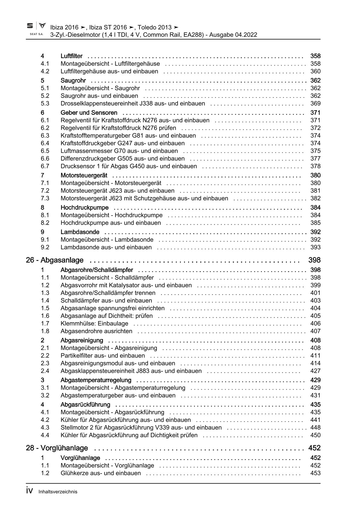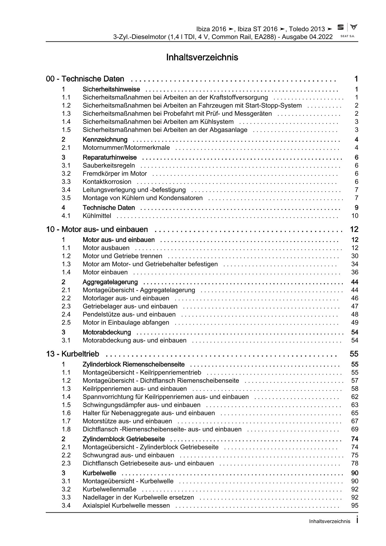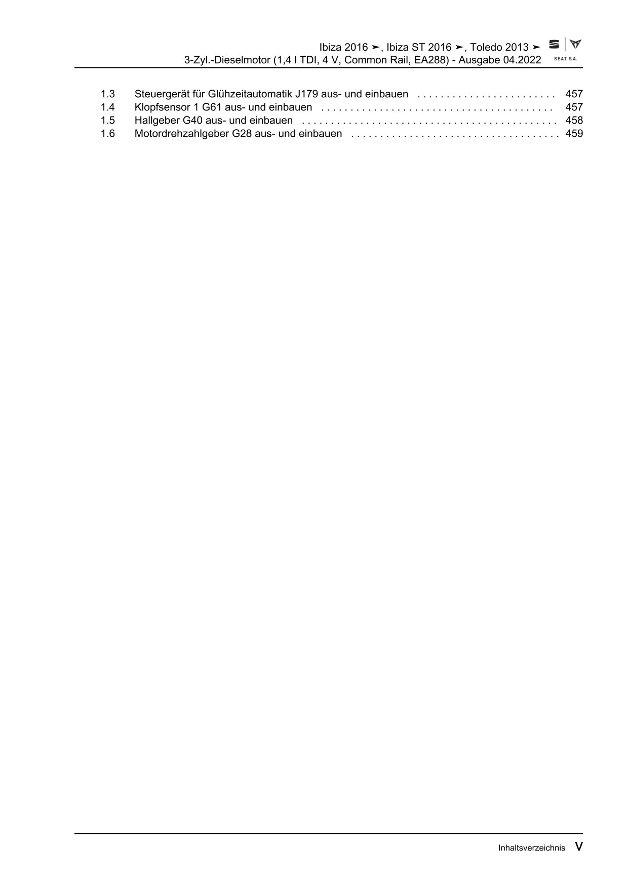 Seat Ibiza Typ 6F ab 2017 3-Zyl. Dieselmotor 1,5l 75-106 PS Reparaturanleitung