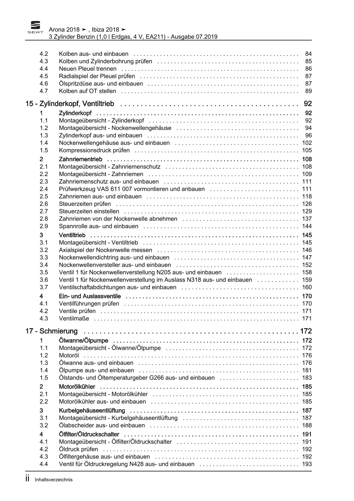 Seat Ibiza Typ 6F ab 2017 3-Zyl. Erdgas Benzinmotor 90 PS Reparaturanleitung