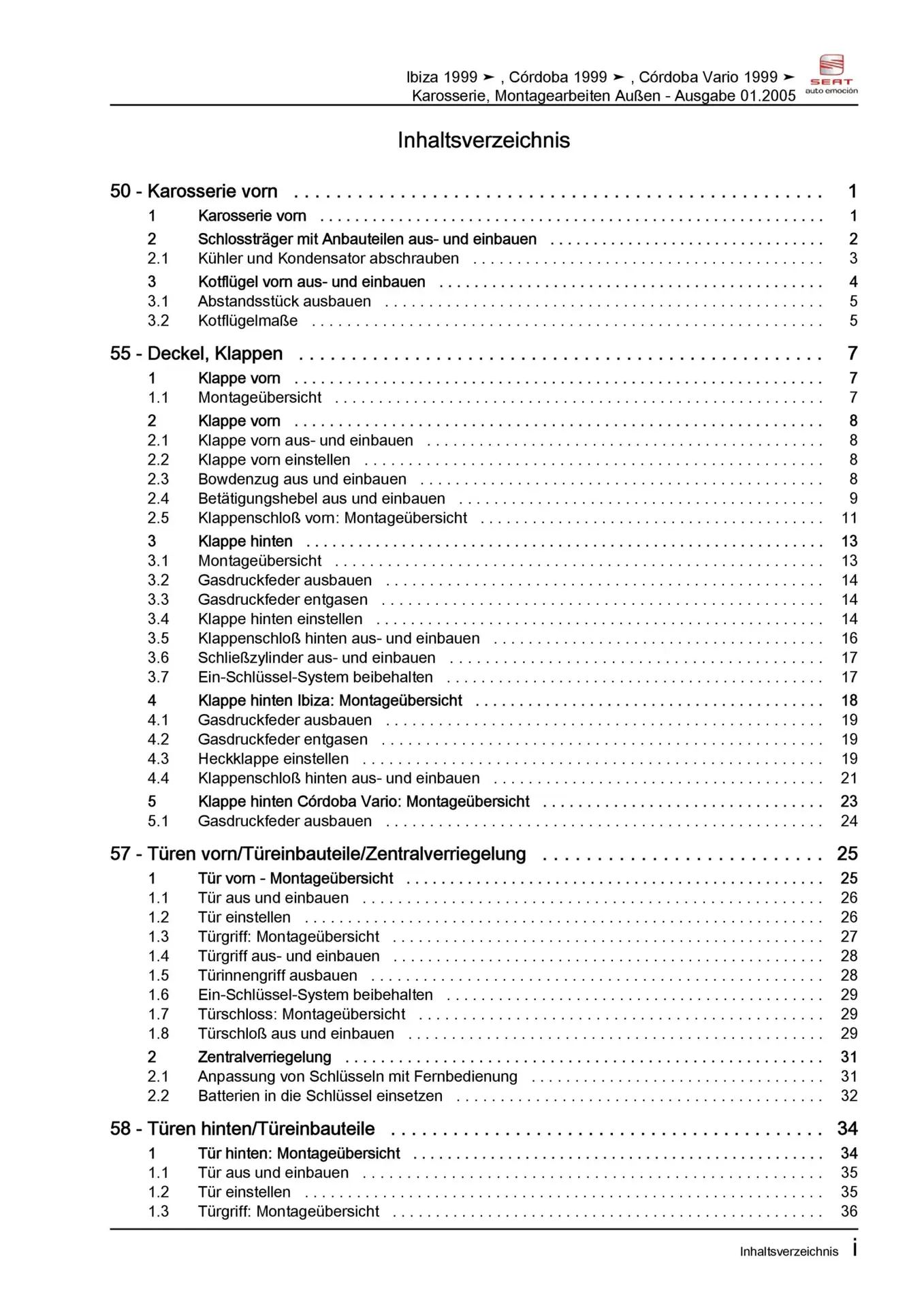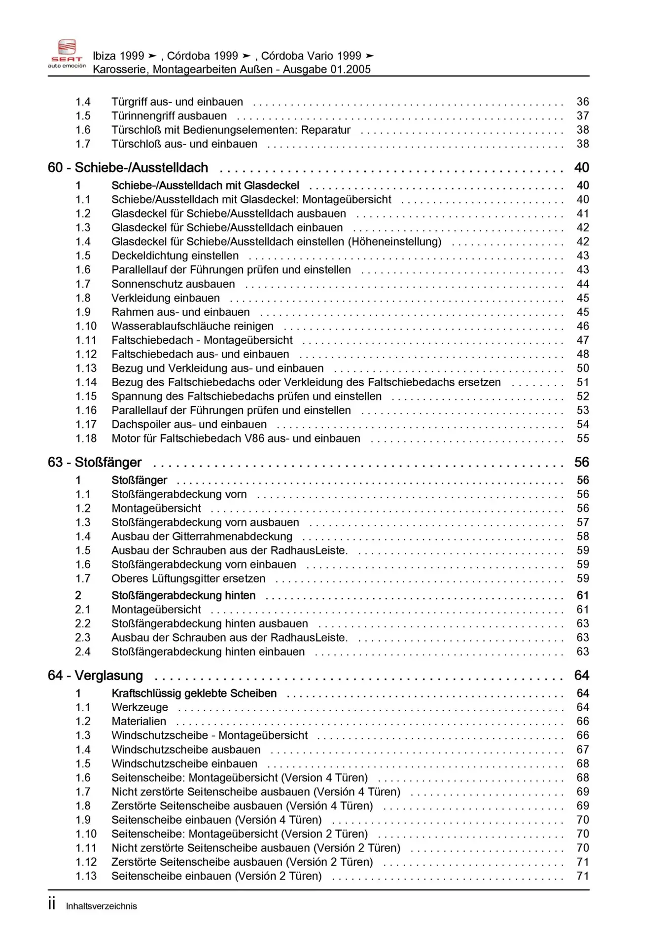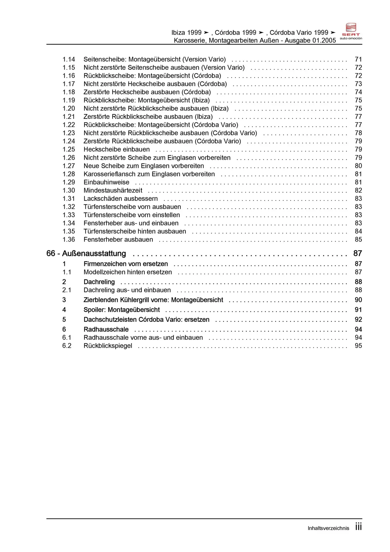 Offizieller Seat Ibiza II Reparaturleitfaden (Typ 6K, 6K1, GP01)