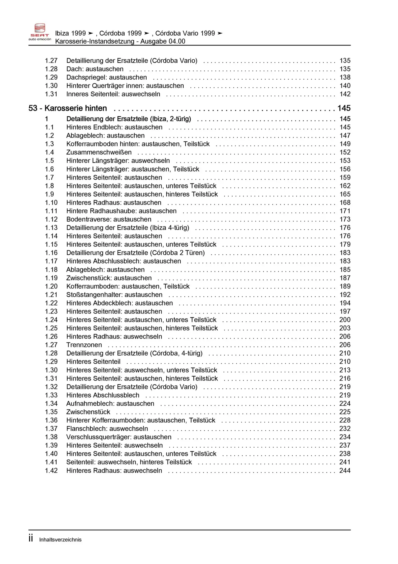 Offizieller Seat Ibiza II Reparaturleitfaden (Typ 6K, 6K1, GP01)