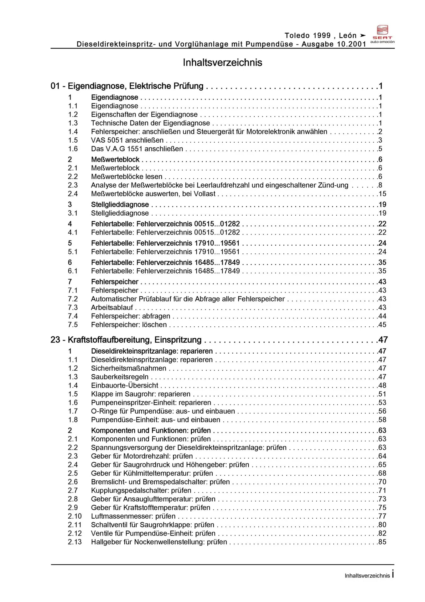 Seat Leon 1M 1999-2006 Diesel Einspritz- Vorglühanlage 150 PS Reparaturanleitung