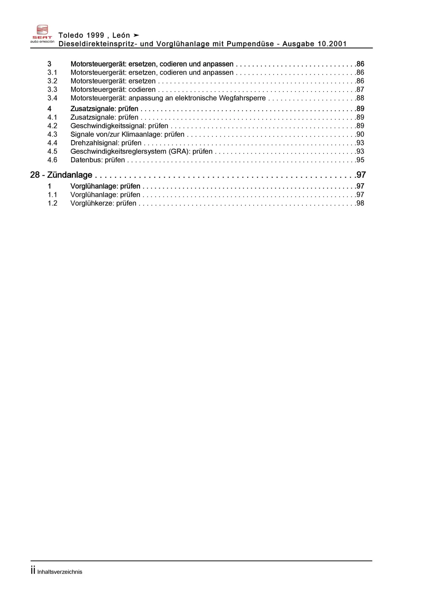 Der Seat Leon I Reparaturleitfaden ist ein lizenzierter Nachdruck der originalen Werkstattunterlagen. Diese Anleitung wird von Vertragswerkstätten verwendet und enthält alle technischen Informationen für fachgerechte Reparaturen.