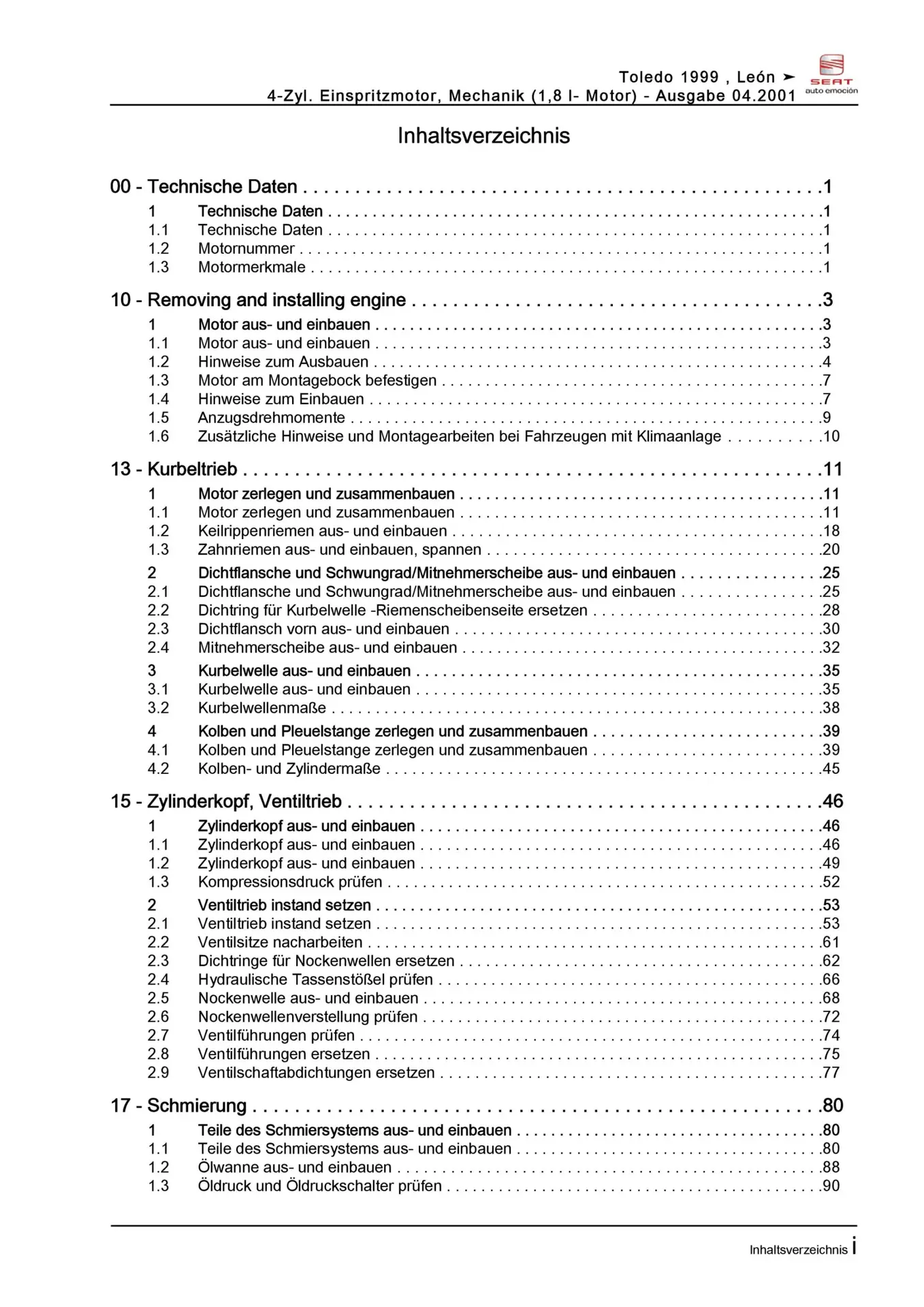Der Seat Leon I Reparaturleitfaden ist ein lizenzierter Nachdruck der originalen Werkstattunterlagen. Diese Anleitung wird von Vertragswerkstätten verwendet und enthält alle technischen Informationen für fachgerechte Reparaturen.