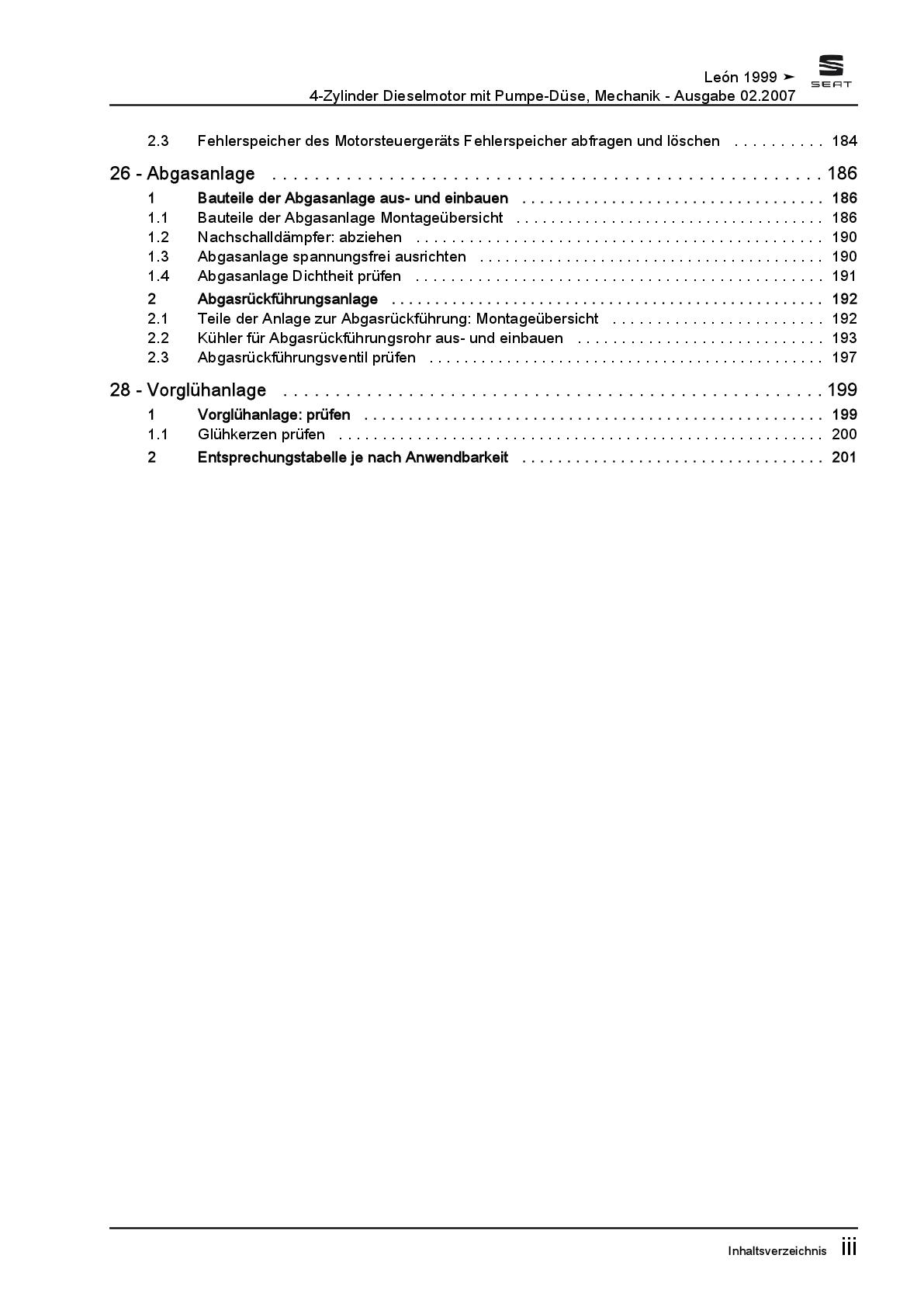 Seat Leon Typ 1M 1999-2006 4-Zyl. Dieselmotor 1,9l 100 PS Reparaturanleitung