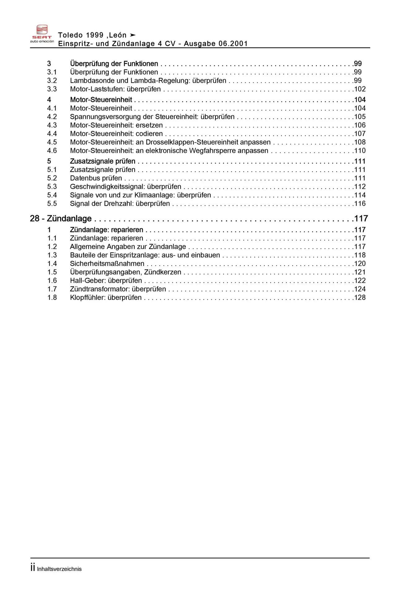 Der Seat Leon I Reparaturleitfaden ist ein lizenzierter Nachdruck der originalen Werkstattunterlagen. Diese Anleitung wird von Vertragswerkstätten verwendet und enthält alle technischen Informationen für fachgerechte Reparaturen.