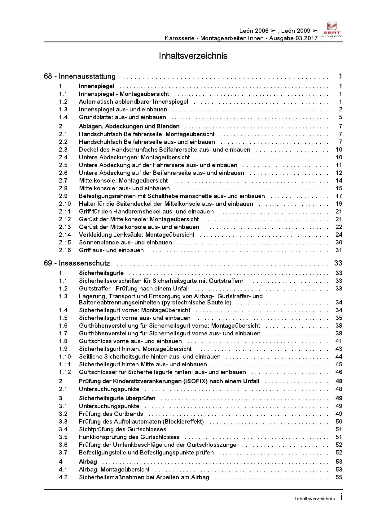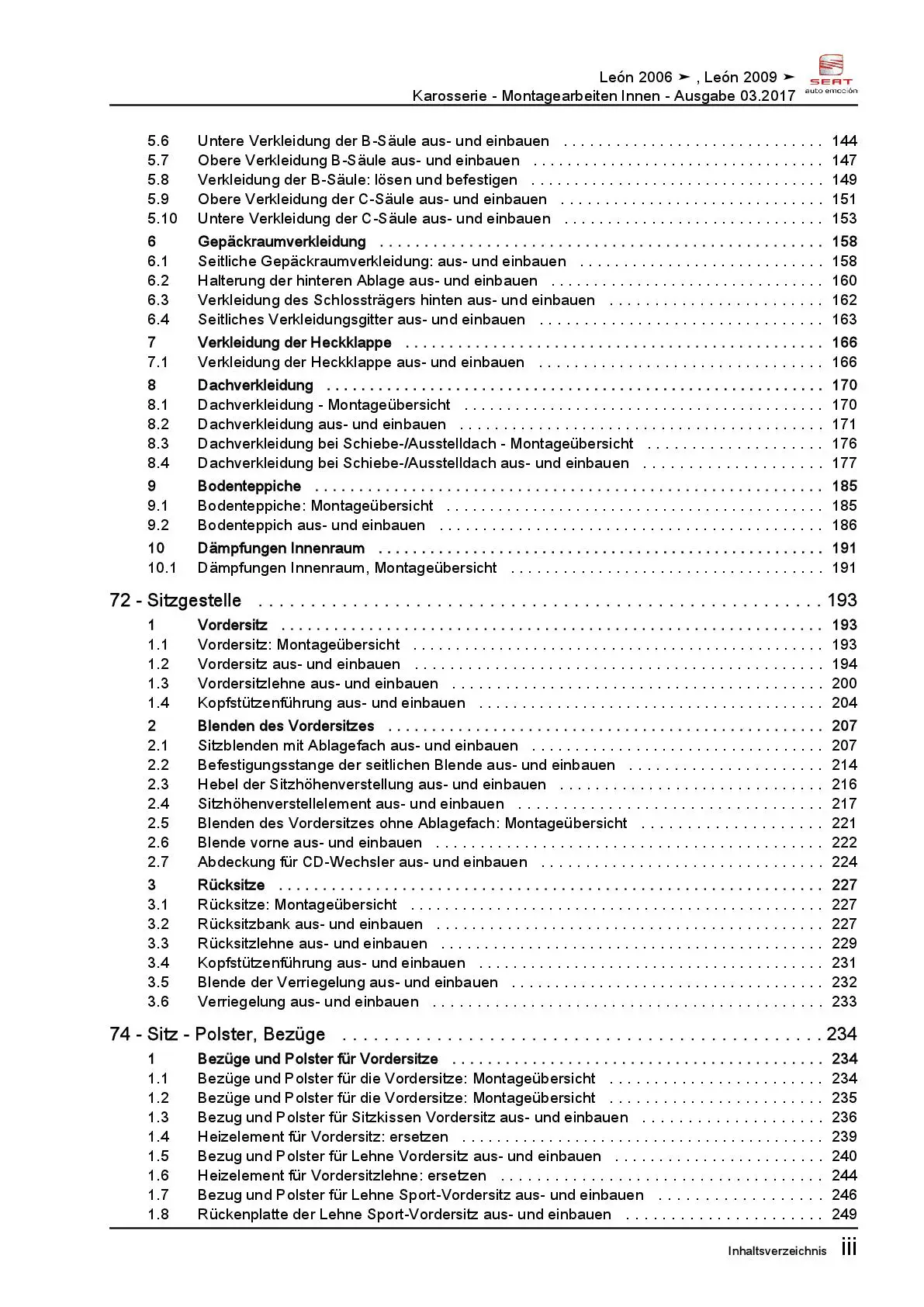 Seat Leon Typ 1P 2005-2012 Karosserie Montagearbeiten Innen Reparaturanleitung