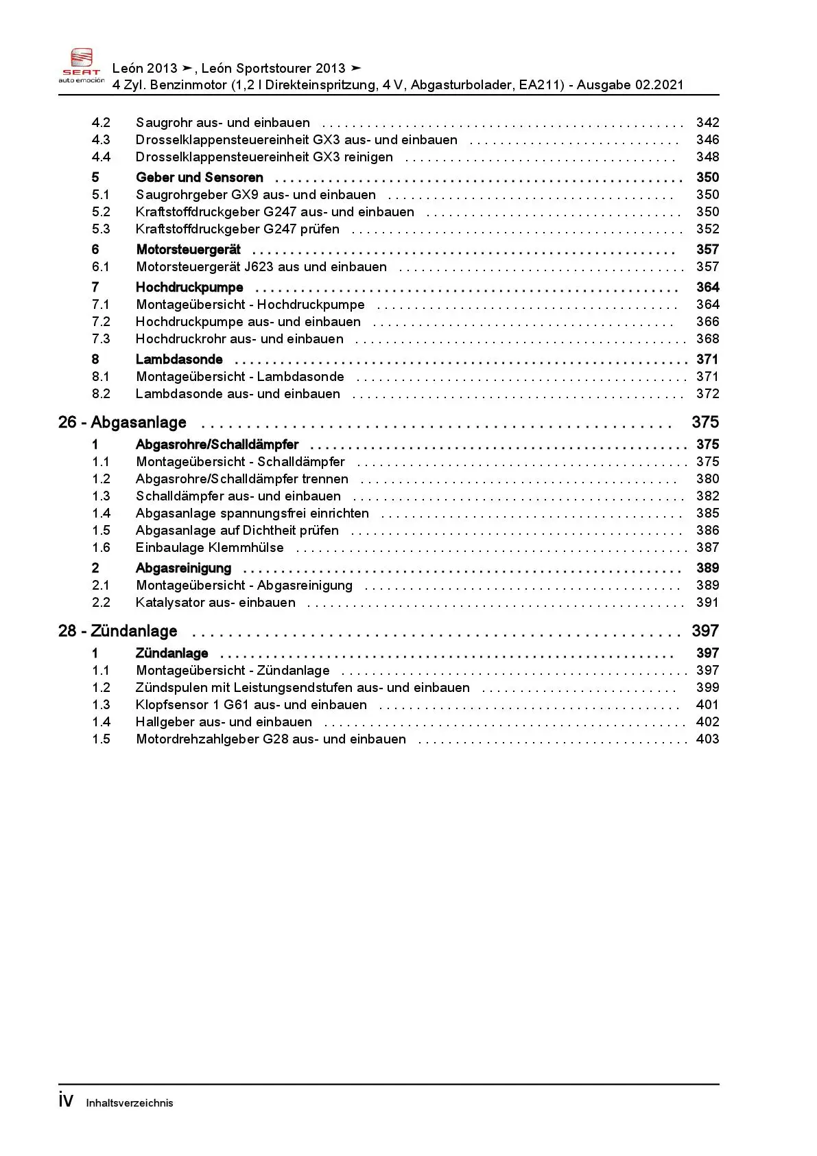 Offizieller Seat Leon III inklusive Sportstourer Reparaturleitfaden (Typ 5F, 5F1, 5F5)