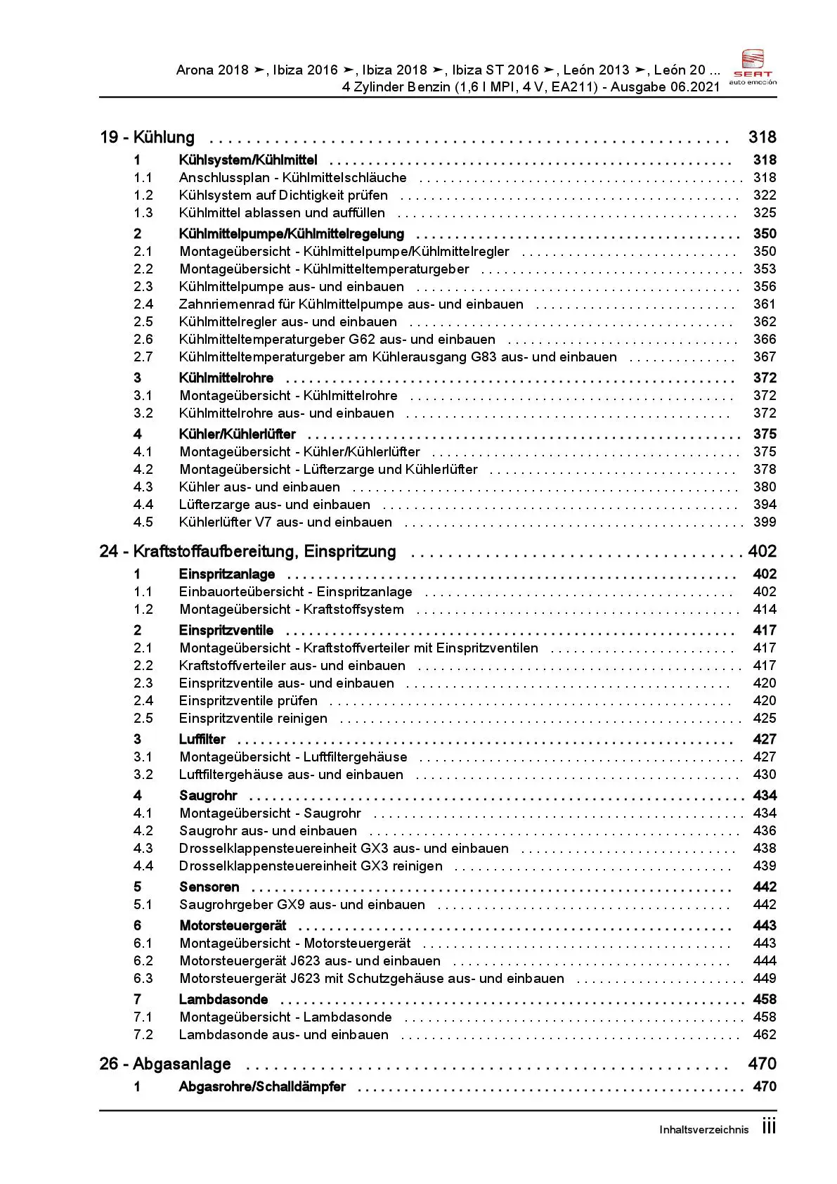 Diese Reparaturanleitung enthält detaillierte Beschreibungen zu Aus- und Einbauarbeiten, Einstell- und Prüfarbeiten sowie zahlreiche Grafiken, Bilder und Explosionszeichnungen. Die Kunststoffringbindung ermöglicht ein problemloses Umschlagen bis zu 180°.