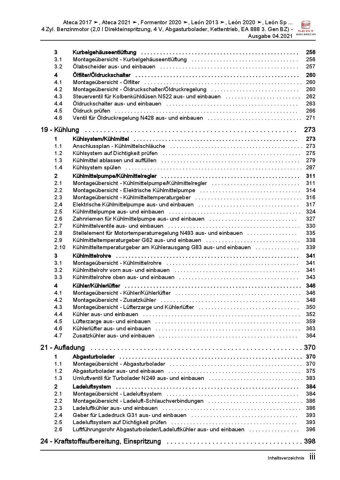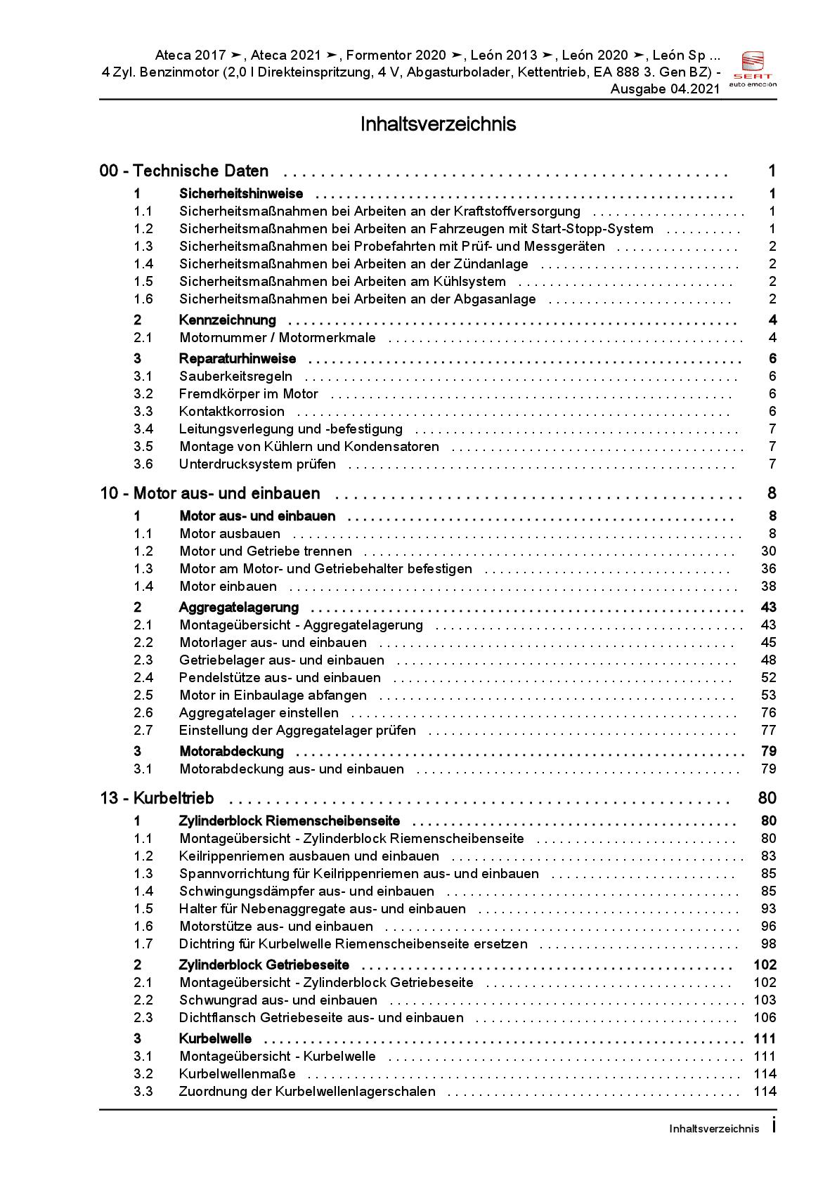 Seat Leon Typ 5F 2012-2020 4-Zyl. Benzinmotor 2,0l 190 PS Reparaturanleitung