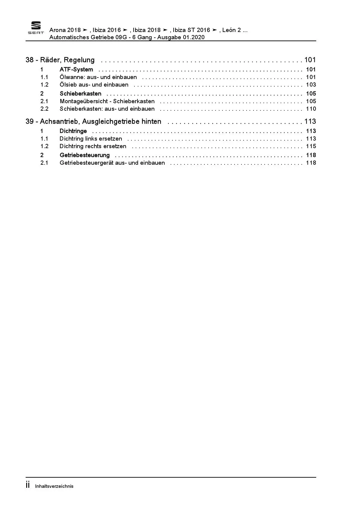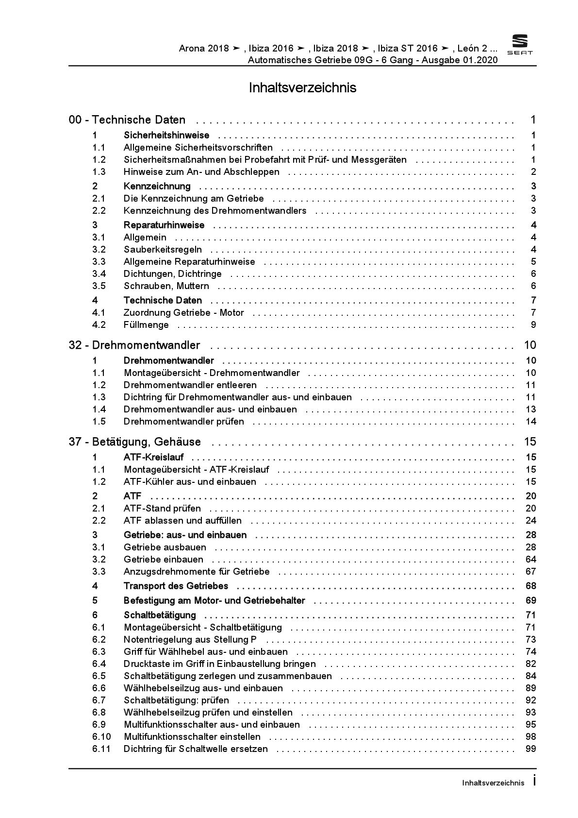 Seat Leon Typ 5F 2012-2020 6 Gang Automatikgetriebe 09G Reparaturanleitung