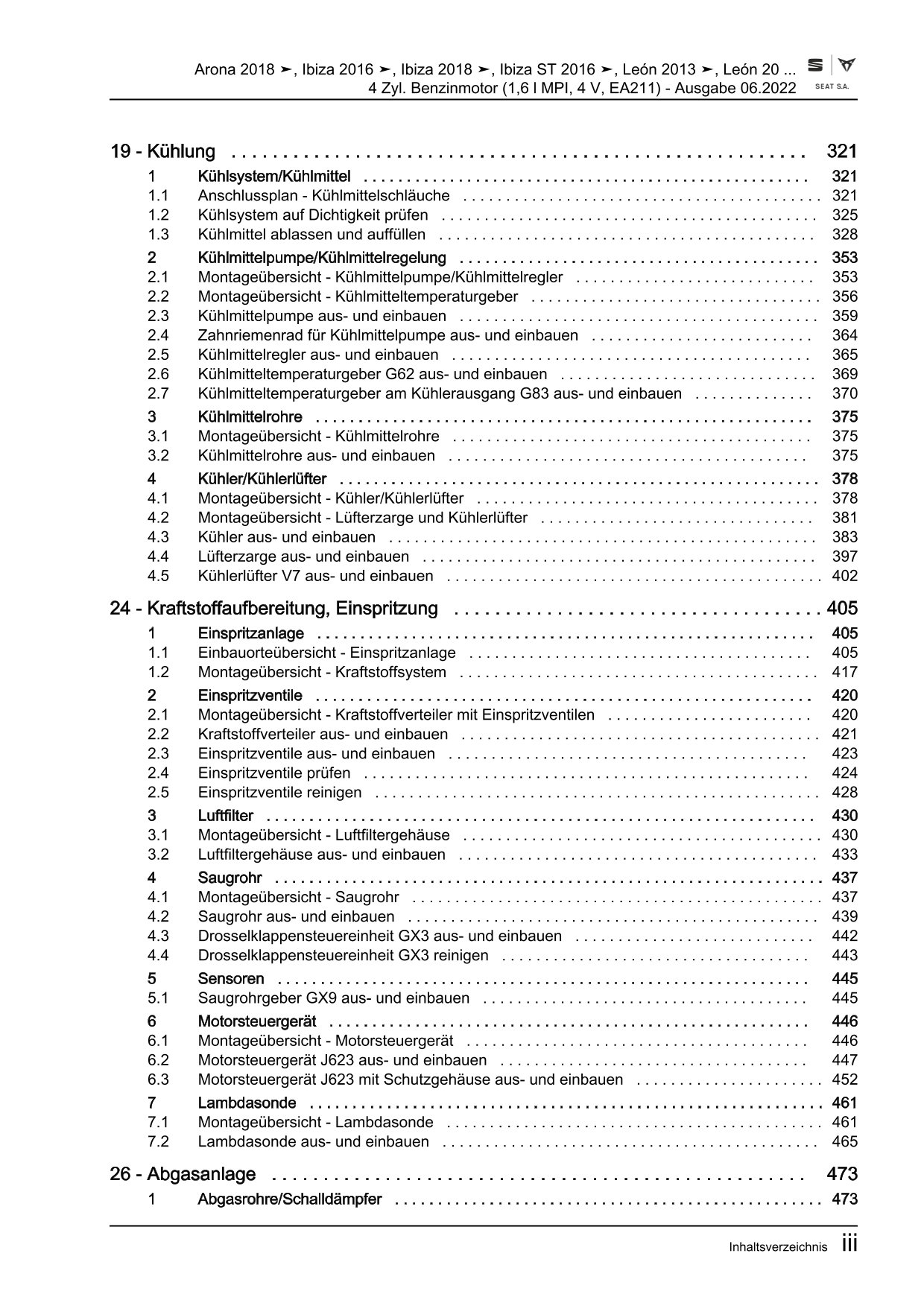Diese Reparaturanleitung enthält detaillierte Beschreibungen zu Aus- und Einbauarbeiten, Einstell- und Prüfarbeiten sowie zahlreiche Grafiken, Bilder und Explosionszeichnungen. Die Kunststoffringbindung ermöglicht ein problemloses Umschlagen bis zu 180°.