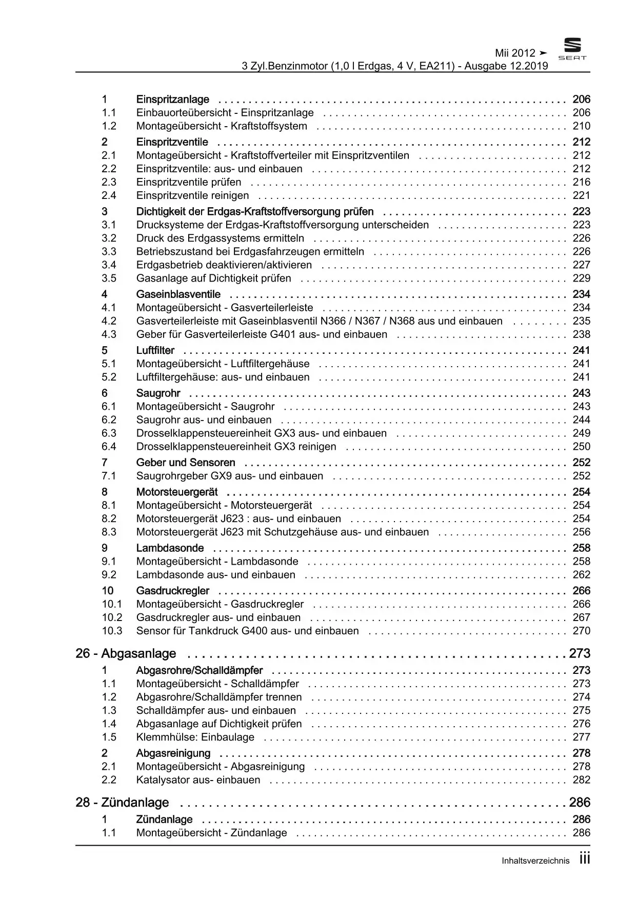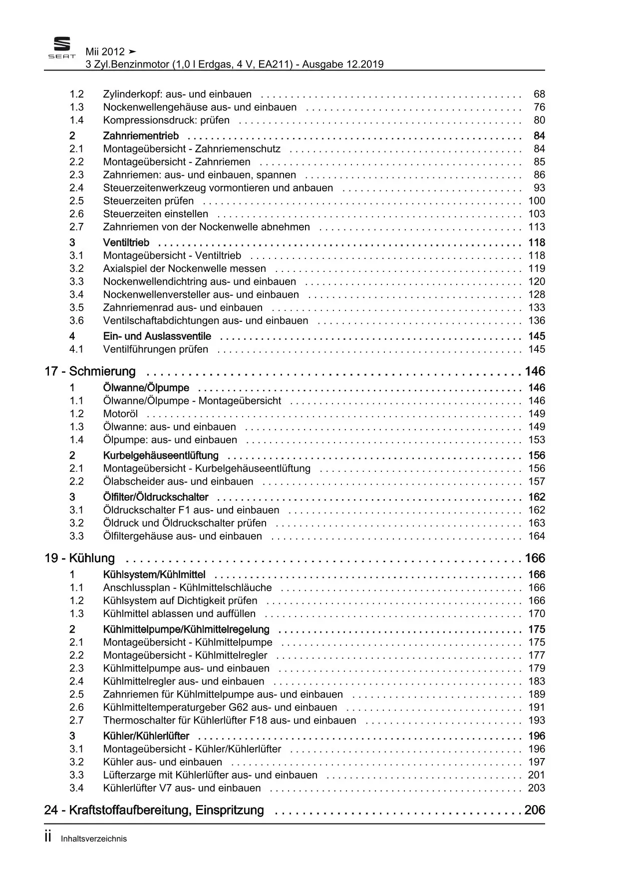 Seat Mii KF 2011-2019 3-Zyl. Erdgas Benzinmotor 1,0l 68 PS Reparaturanleitung