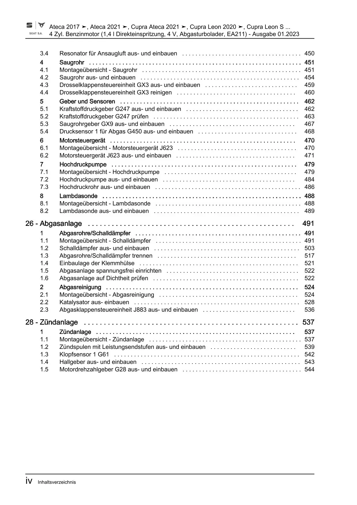 Seat Tarraco KN 2018-2024 4-Zyl. Benzinmotor 1,4l 122-150 PS Reparaturanleitung