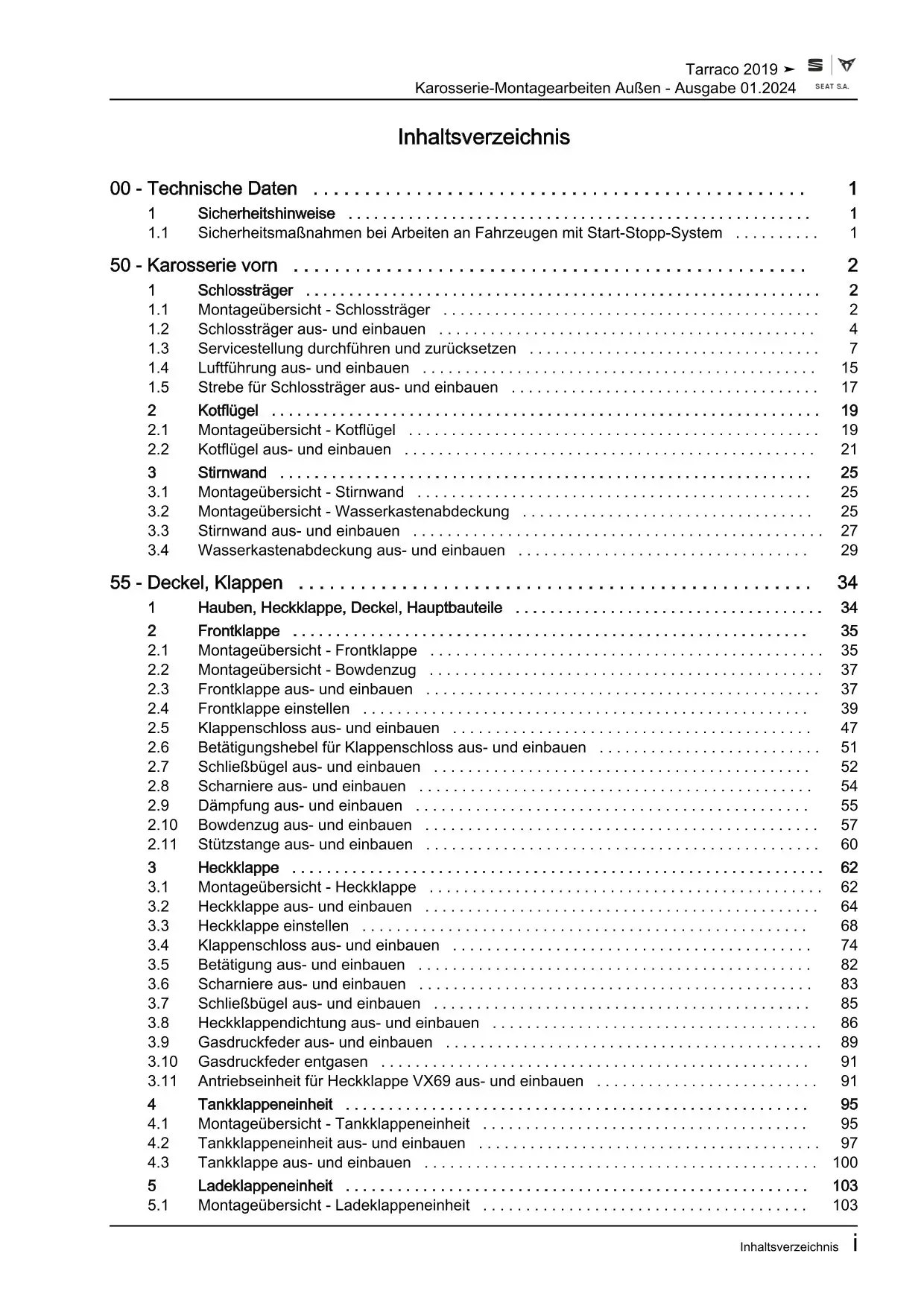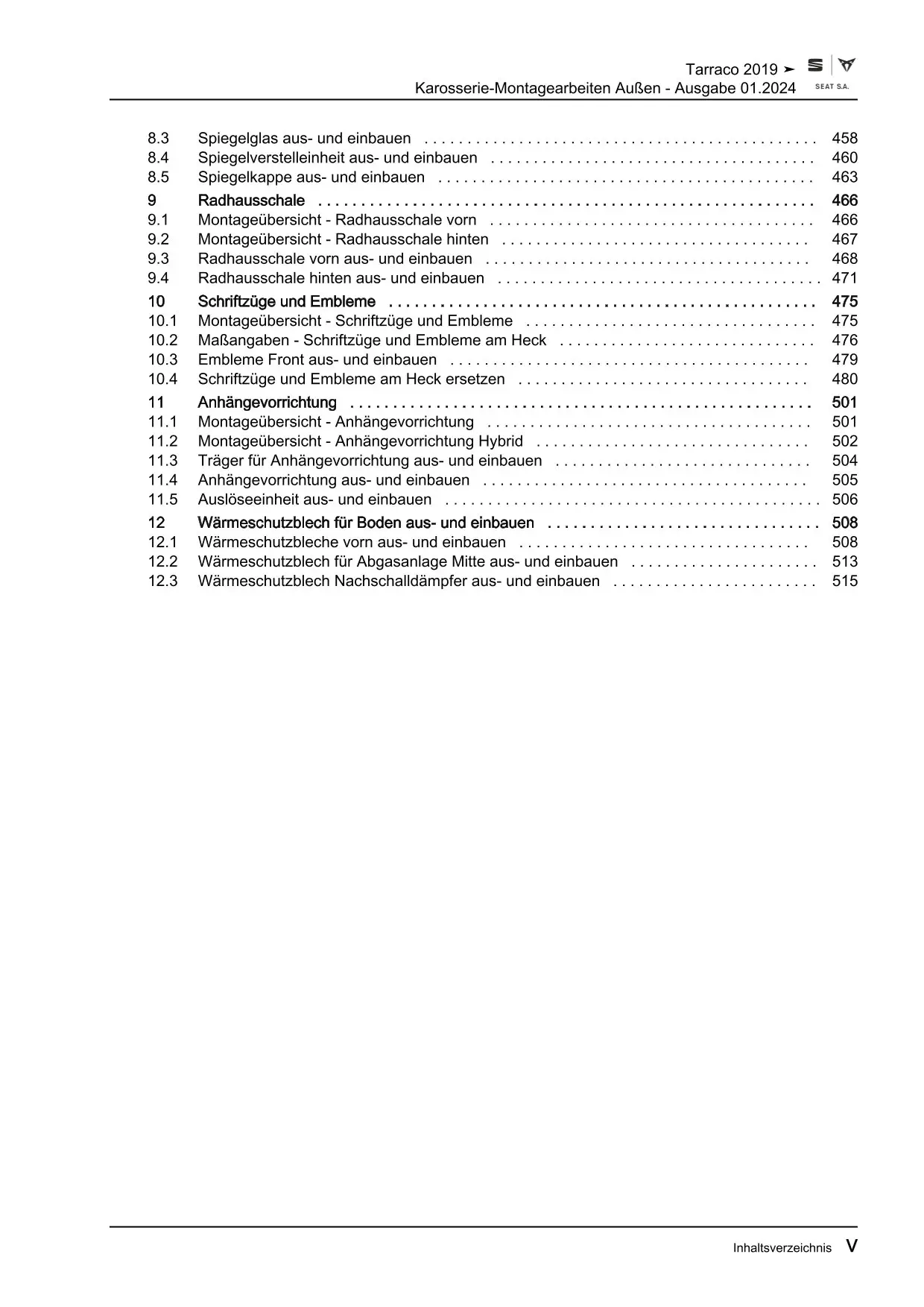 Offizieller Seat Tarraco Reparaturleitfaden (Typ KN, KN2)