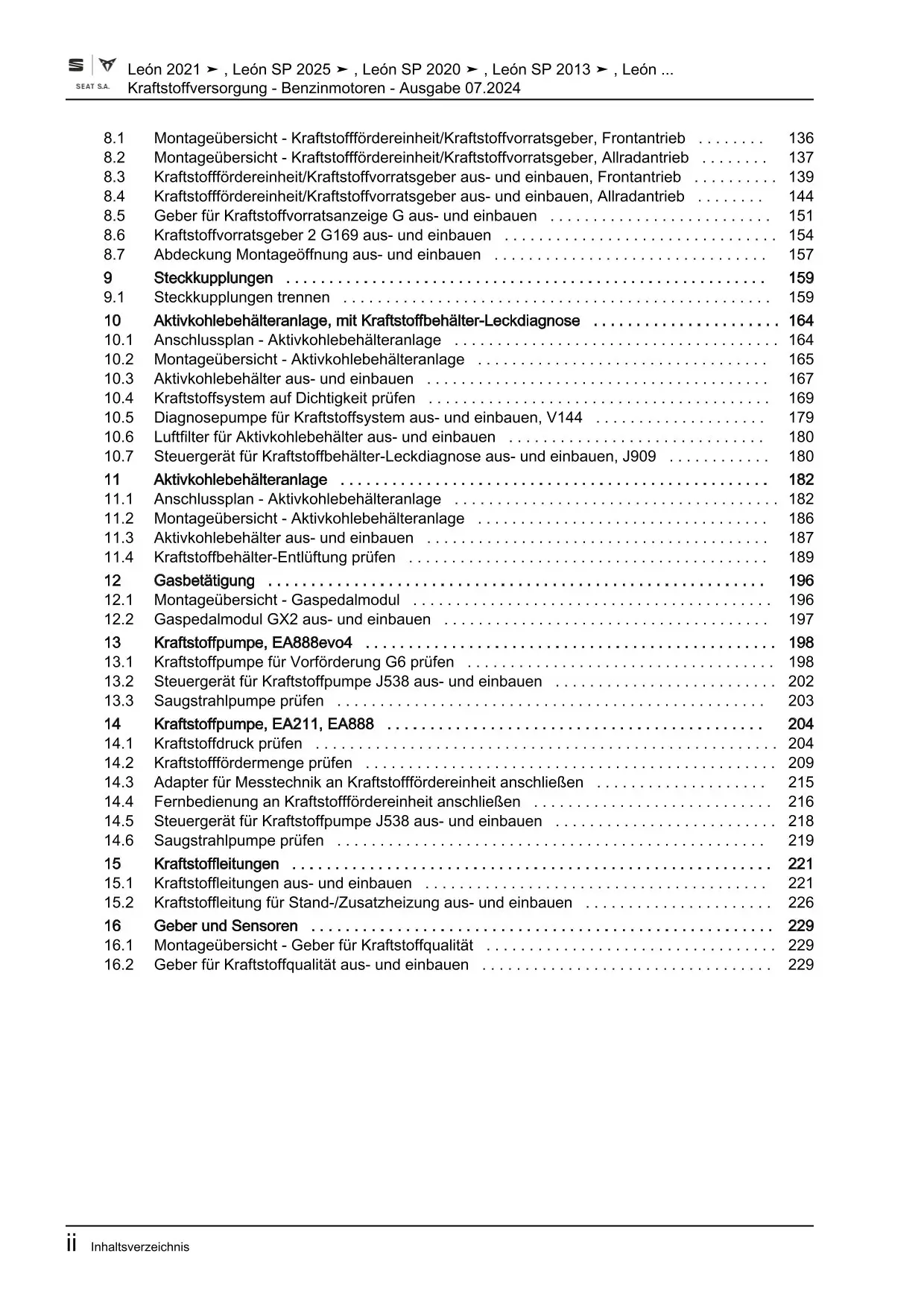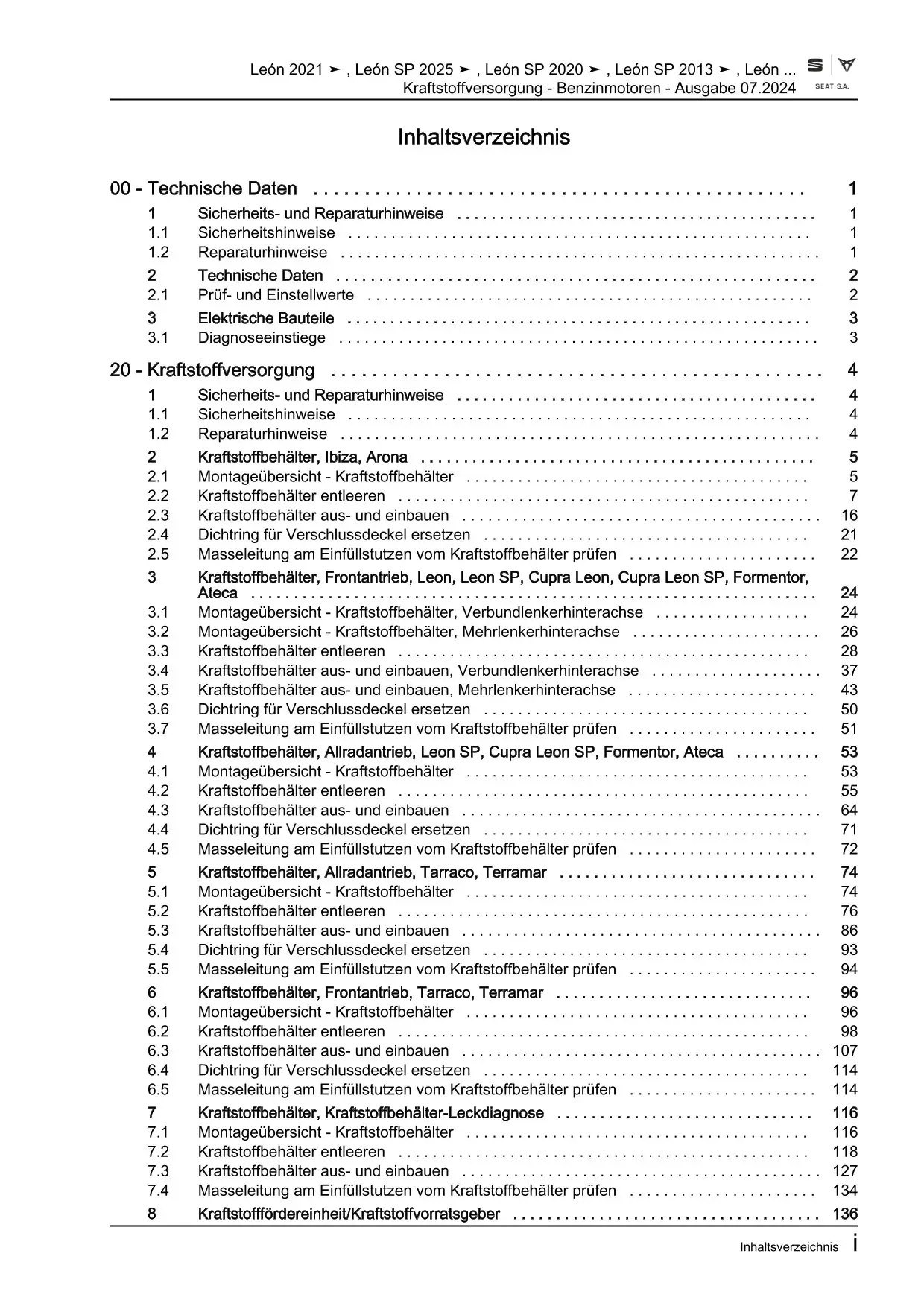 Seat Tarraco KN 2018-2024 Kraftstoffversorgung Benzinmotoren Reparaturanleitung