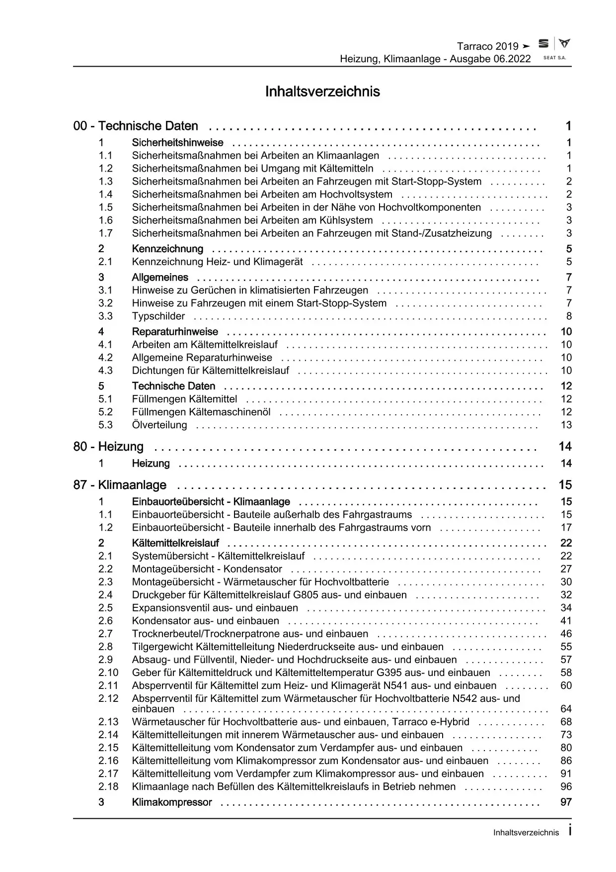 Seat Tarraco Typ KN 2018-2024 Heizung Lüftung Klimaanlage Reparaturanleitung