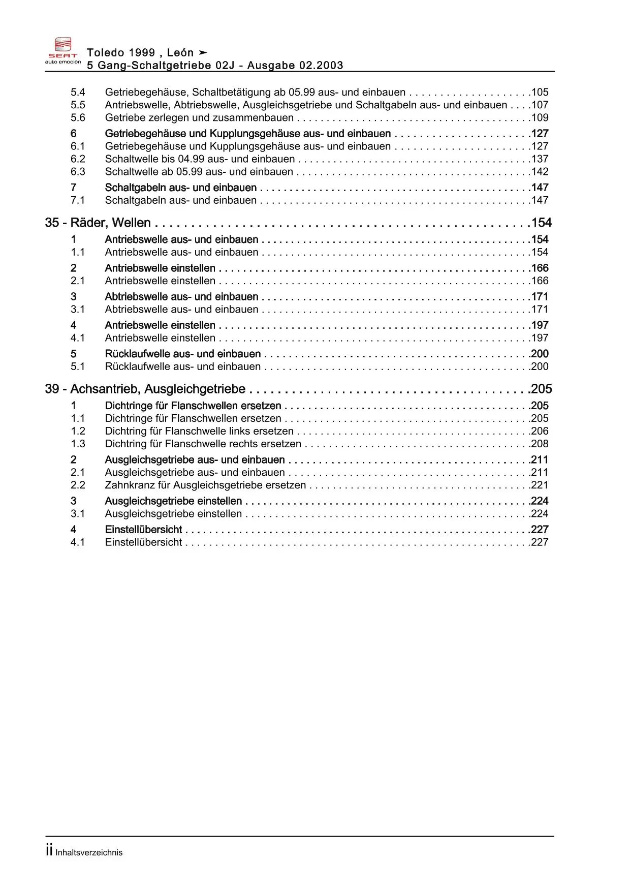 Seat Toledo 1M 1998-2004 5 Gang Schaltgetriebe 02J Kupplung Reparaturanleitung